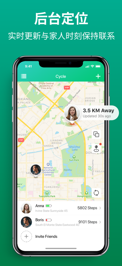超1200万人使用的定位找人软件,亲友位置和轨迹查看软件; 时刻掌握行踪,守护TA的安全。 我们为什么要研发这款软件? 异地情侣总是担心对方是否在家是否安全,你想时刻守护伴侣安全,你该怎么办?家人的安全始终是我们关心的事情,家中的老人和小孩更是丢失的高危群体。当家中老人孩子电话不接,消息不回,你完全不知道他们在哪里,这时你该怎么办?孩子寄宿上学,你每天都不在孩子身边,想知道他是否每天都在学校还是出去玩耍了,你该怎么办?安排家中老人小孩出去旅行,你想时刻知道旅行团的出行轨迹,一旦旅行出问题你能是马上知道他们位置吗?爱人或者同事出差想把控出差位置和线路轨迹,能否及时知道是否到达指定地点呢? Tracking能够完美的解决以上问题,通过手机后台实时定位技术、历史路线回顾技术、到达和离开具体位置提醒技术,让你对一切都了如指掌。 软件提供的主要功能如下: 1.查看手机的实时位置,知道对方现在在哪里。 2.查看对方网络状态,判断是在室内还是室外。 3.您可以回顾过去30天对方去过的地方。 4.你可以记录自己去过的位置,方便以后回顾。 5.当家人朋友到达和离开指定位置的时候你就能收到提醒。 软件的主要用途有: 1.情侣定位:情侣之间相互关心,时刻知道对方位置知道对方是否安全。 2.老人小孩防丢,当孩子不在身边的时候能时刻关注孩子的位置,如果找不到还在也能查看孩子的历史轨迹,时刻守护家人安全。 3.密友圈使用该软件,和你的好友时刻保持链接,随时查找朋友。 4.外勤人员使用,通过实时定位追踪和位置记录保障员工安全和记录工作位置。 5.查找我的iPhone,如果我的手机丢失,我们软件提供了比苹果自带软件更精准的定位和更详细的历史数据。 6.其他更多用途让你了解位置,多一份心安。 现在邀请家人朋友一起使用该软件,你就能时刻掌握家人的位置和历史轨迹,对方进入和离开你指定的地方你都能收到提醒。 关于软件耗电:我们针对不同的手机待机情况提供了两种定位模式。1.省电模式:如果您的手机电池容量不高,或者平时不能随时充电,建议选择省电模式,这种模式下手机停止移动的时候(比如在家或者办公室)是不会记录位置信息的,当再次移动的时候才会继续记录位置信息。2.如果您的手机电池容量高待机时间长或者平时充电比较方便,建议选择高精度定位模式,这种模式会24小时不间断记录位置信息,你能获得更精确的手机定位数据。 目前我们已经做到了软件体积小,耗电少,功能运行稳定等技术积累我们也将不断努你听起用户建议,不断优化和打磨产品。如您有任何使用问题和建议以及商务合作可以随时联系我们,联系方式如下: 联系邮箱:applecounts2@163.com 期待您的建议! 特别提示:Tracking在后台持续使用位置时会较多的使用电池电量,有可能降低电池使用寿命。请合理选择定位模式。
