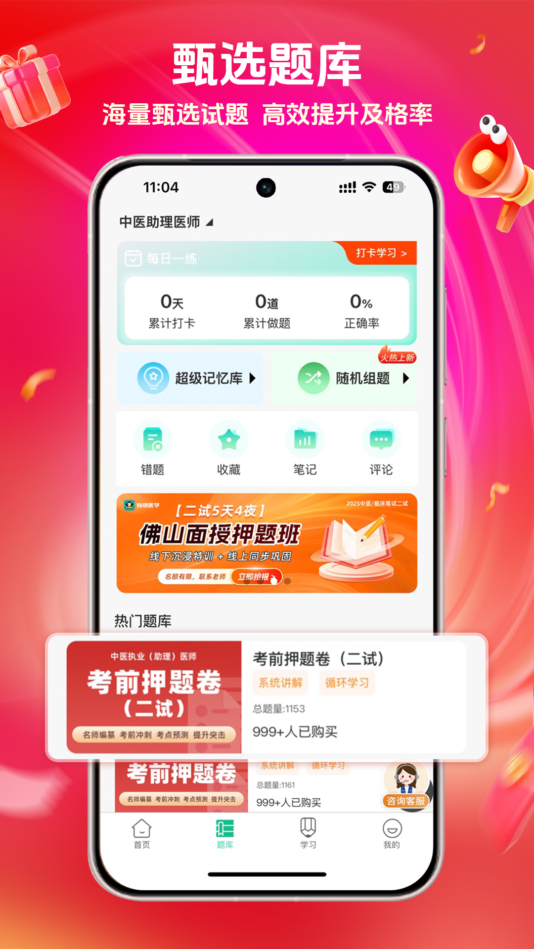 【2025年题库】西综考研-中医考研-执业医师(临床-中医-口腔-中西医)-护士执业资格<br>医考真题帮助医学考研和执业医师考试的APP,包含西医综合考研真题、中医综合考研真题,临床执业医师、中医执业医师、执业助理医师等科目的历年真题,是帮助医学考研学生以及护士医师等执业医师考试的利器。<br>题库全面覆盖医学考研考点、精准剖析医考真题难题。本应用功能强大、匠心汇聚,为医考学生提供权威、高效的学习、交流平台! <br>真题题库随时刷,为考研医学生提供全程、全方面的考研指导。 <br>【功能介绍】 <br>错题、笔记、收藏:基础功能。 <br>答案分享:答疑解惑,考生解决考试过程中遇到的各种问题。 <br>考点狂背:真题涉及的考点归纳总结,高频考点一目了然! <br>模拟考试:按照新大纲考试模式进行。便于大家把控自身复习情况。