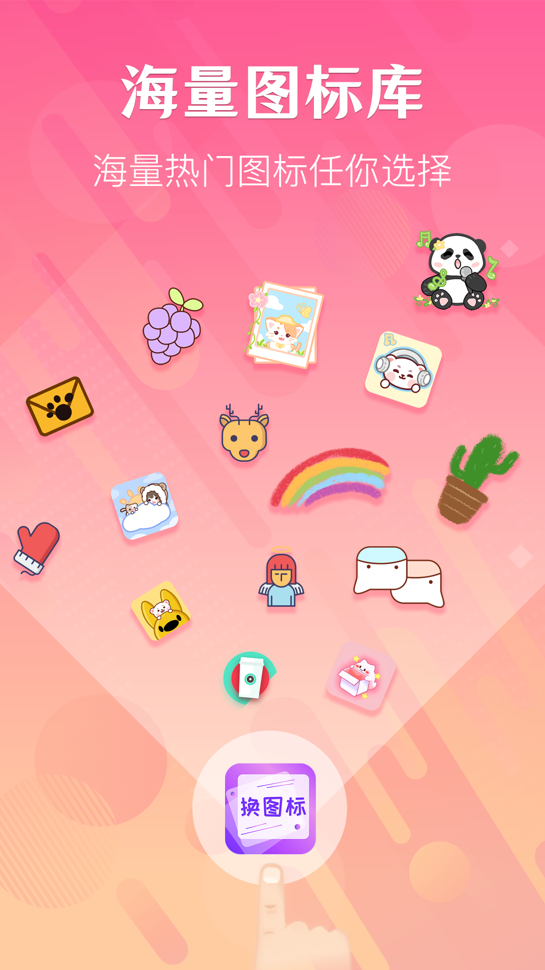 还在苦恼 APP 图标无法改变?“换图标”帮助您轻松解决,“换图标”可以让您替换手机中任意一款 APP 的图标和名称。<br>比如:<br>-用女友头像做图标给她爱的小惊喜<br>-用喜欢的明星、宠物、动漫、风景做图标看着心情就愉悦<br>-还可以改 APP 名称,在好友面前炫耀,酷炫值爆棚<br>-内置本地图标包内容丰富<br>-编辑图片具有基本形状模板<br>“换图标”创造你的桌面仪式感。天天有惊喜。<br>1,在手机相册里找到你喜欢的图片,自定义截图替换成桌面图标。<br>2,提供文字图标,文字可变色。你可以把恋人的名字打出来,摆到自己的手机屏幕上,截屏发给心爱的ta秀一把恩爱。<br>3,提供图片和拼图包,创作更简单。<br>用热门明星、动漫二次元、游戏,超酷车标和球队队徽制作图标。<br>提供哪吒、机器猫、皮卡丘整体拼图,让你的屏幕充满个性。<br>热门应用图标自定义替换。<br>4、你可以随意改制作新图标的名称。