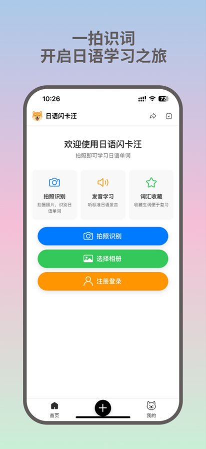 让生活成为词汇练习场,从一张照片开始——这就是「日语闪卡汪」。 专为日语初学者、孩子与亲子家庭设计,「日语闪卡汪」结合AI图像识别与词汇记忆系统,让孩子在玩中学、看中记,轻松掌握地道日语。 【功能特色】 ・拍照识词:对准日常物品,自动识别日语词汇与发音 ・标准朗读:每个词汇都配有清晰的日语发音,点击即可收听 ・词卡模式:自动生成闪卡,支持标记“认识/不认识”强化记忆 ・相册导图:支持从相册选择图片识别,学习更灵活 ・无广告设计,界面干净,操作简洁,儿童也能独立使用 【为什么选择我们?】 ・不背单词书,不刷题,随手一拍就是学习素材 ・激发孩子好奇心,让学习变成有趣的探索 ・适合亲子共学、亲子互动,是家庭日语启蒙好帮手 不论你是在家、在路上,还是在超市、餐厅,只要看得见,就能学得会。 和“柴老师”一起,把生活变成你的日语课堂吧!