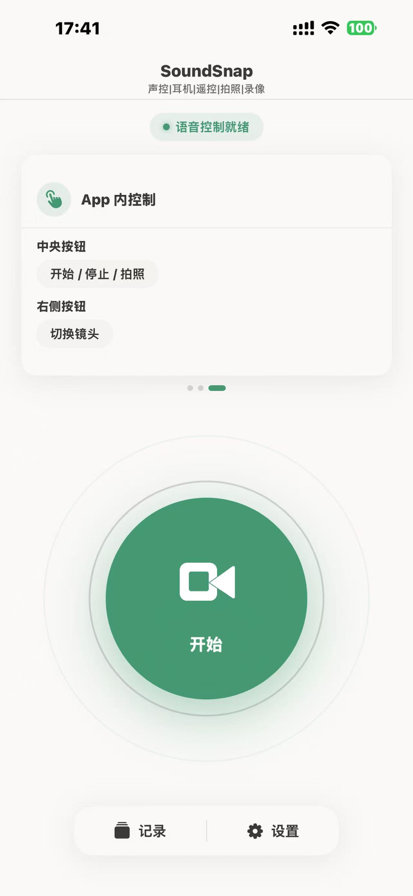 SoundSnap 是一款支持声控与耳机键控制的拍照、录像应用。说一句话或按一下耳机上的播放键,就能拍照或开始/停止录像。 无论是记录旅途风景、捕捉亲友笑颜,还是留存重要证据,SoundSnap 都能以创新的声控与耳机键控制技术,为您带来前所未有的便捷拍摄体验。 ■ 三种控制方式 · 语音控制 在录像模式下,说「开始录像」「录像」「拍摄」即可开始录像,说「停止」「停止录像」「结束」即可停止。在拍照模式下,说「拍照」「拍一张」即可拍照;说「打开闪光灯」「关闭闪光灯」可控制闪光灯(仅后置摄像头)。 · 耳机按钮控制 连接有线或蓝牙耳机后,在拍摄界面使用耳机上的「播放」键:录像模式下按一下开始录像、再按一下停止;拍照模式下按一下即拍照。操作结果可通过耳机语音播报(如「开始录像」「录像已保存」「拍照成功」),无需看屏。 · App 内触控 拍摄界面中央大圆钮:录像时点击开始/停止,拍照时点击拍照;右侧按钮切换前后摄像头;后置拍照时顶部可开关闪光灯。 ■ 主要功能 · 拍照与录像:支持前后摄像头、闪光灯(拍照 + 后摄)。 · 黑屏静音拍摄:可选不显示画面、不播放语音,仅通过耳机按键或触控操作,更私密。 · 语音播报:可选开启,用语音提示「开始录像」「录像已保存」「拍照成功」等,便于盲操作。 · SoundSnap 相册:本应用拍摄的照片与视频会统一保存到「SoundSnap」相册。 · 我的记录:在应用内集中查看、播放、多选删除本应用拍摄的媒体,管理更清晰。 · 水印与设置:可为照片添加时间、位置、应用名等水印;支持深色模式、多档字体、多语言(简中/繁中/英/日/韩)及指令说明。 ■ 适用场景 · 单手或双手不便时,用语音或耳机键完成拍照、录像。 · 骑行、运动、户外时,免提控制更安全。 · 需要低调记录时,可使用黑屏静音模式。 · 希望所有 SoundSnap 拍摄内容集中查看与管理时,使用「我的记录」与 SoundSnap 相册。 SoundSnap 注重隐私与本地存储,拍摄内容保存在您的设备与相册中。如需使用语音识别、相机、麦克风与相册,我们会在使用前请求相应权限。 感谢您选择 SoundSnap,说一声或按一下,轻松咔嚓。
