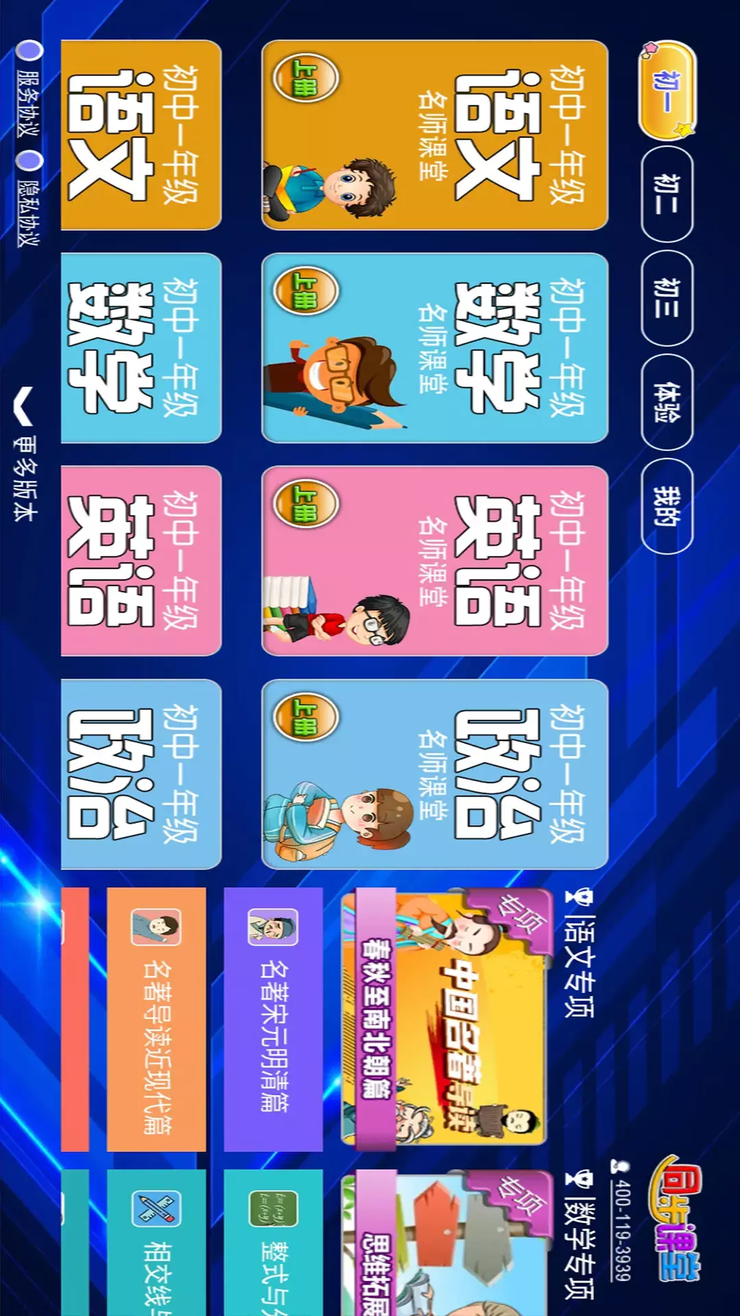 初中同步课堂是一款专为初中生打造的名师同步学习软件,应用为您提供了丰富的一线名师同步教学视频,以及最新评测试卷与分析,可以让各个阶段的学生在名师指点下快速学习、准确提分,是每个莘莘学子不可或缺的补课提分神器!<br><br>涵盖初一初二初三语文数学英语政治物理化学!<br>名师团队根据近年来各地考试情况的分析,对考试重点的把握,精心设计的一系列课程,紧扣大纲,同步精讲,考试拓展,还有针对中考的复习讲解。让学生快速提分!<br><br>#优化视频播放,更流畅更舒适,适配更多屏幕播放<br>#优化用户学习场景,吻合用户使用习惯,流畅度大幅提升。<br>#支持更多手机屏幕,支持多屏互动播放。<br><br>我们随时听取您的宝贵意见,您的建议是我们进步的源泉。<br>关注微信公众号:三及第互动课堂<br>客服热线:400-119-3939