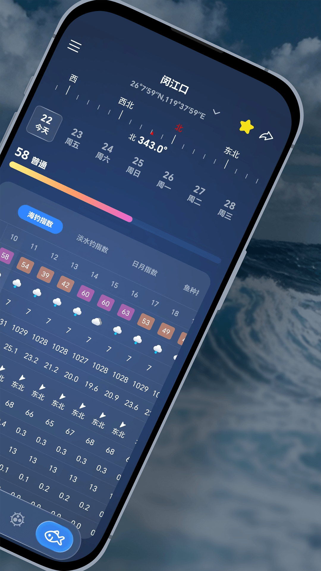 全球潮汐Pro 是一款面向全球用户的专业级海洋与气象预报工具,无论你是钓鱼爱好者、冲浪玩家、航海人士,还是从事海洋科研、渔业、航运等专业工作,都能为你提供精准、全面、可靠的海洋与气象数据支持。 1. 实时天气与风浪预报 提供逐小时精细化天气预报,涵盖气温、湿度、云量、风速、风向、降水量、空气质量、紫外线指数等关键指标。 2. 离线潮汐预测 支持离线模式使用,无需网络或无Wi-Fi 即可查看全球任意地点的潮汐曲线与每日潮差表。 3. 专业海浪分析 提供浪高、浪周期、浪向数据,并支持三组分浪解析,帮助你全面评估当前与未来浪况。 4. 淡水水温预测 提供独家淡水水温预测模型,适用于湖泊、水库、河流等内陆水域,为淡水垂钓、生态监测与水资源管理提供科学依据。 5. 钓鱼指数模型 基于天气、气压、风速、风向、气温、湿度、水温、潮汐、月相等多维环境因子,结合不同鱼种的生态习性,计算海水及淡水的鱼种钓鱼指数。 6. 月相与天文数据 月相变化、月出与月落时间,为钓鱼、航海及夜间海上活动提供关键参考。 7.海洋动力与生态监测 海表潮流及表层至多深度洋流的速度、方向与温度变化趋势预测,同时提供海洋初级生产力、叶绿素浓度与浮游植物分布等关键生态指标。