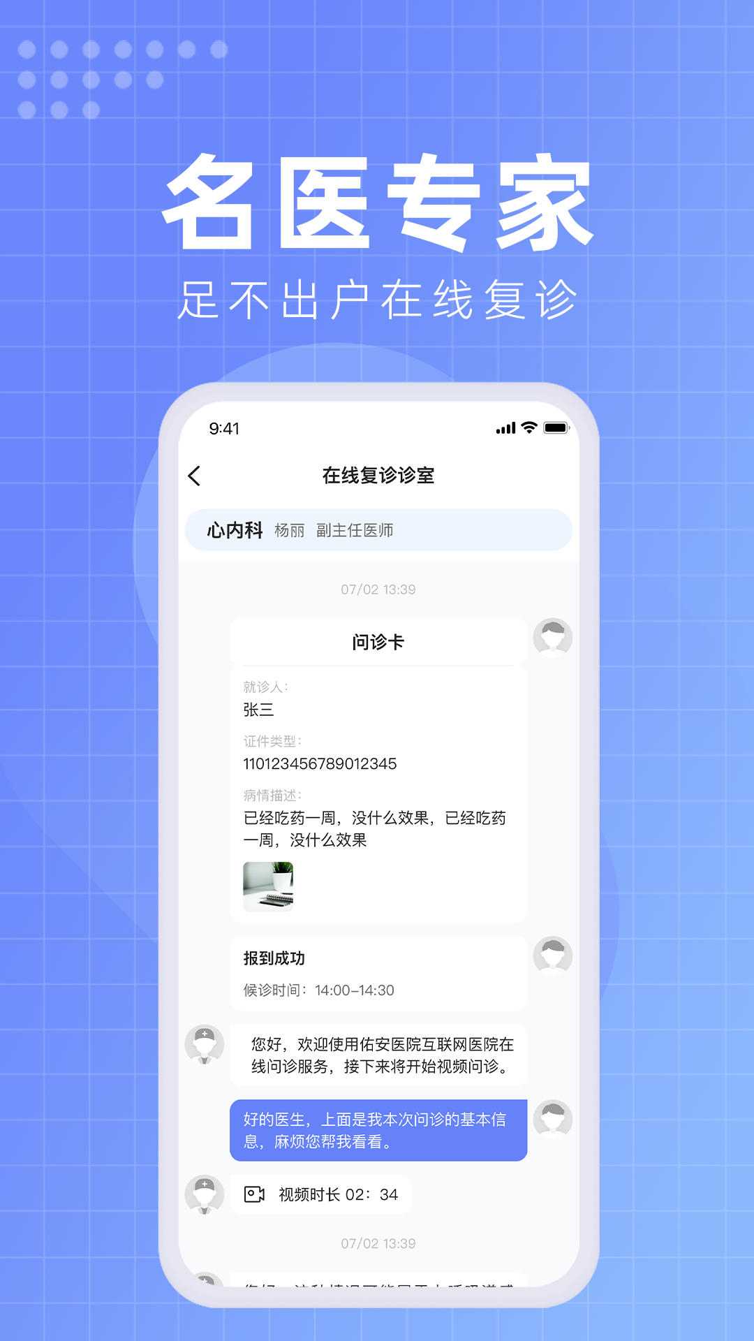 北京佑安医院<br>互联网医院正式上线!<br><br>足不出户,通过互联网在线复诊,医生与患者可进行图文、语音、视频等实时沟通,极大提高患者就医效率,还能更便捷的在线进行诊断,将药品配送到家。<br><br>在线问诊 名医一对一,方便放心<br>名医专家 足不出户在线复诊<br>开药续方 药品快递配送到家<br>报告查询 检查检验报告线上查看