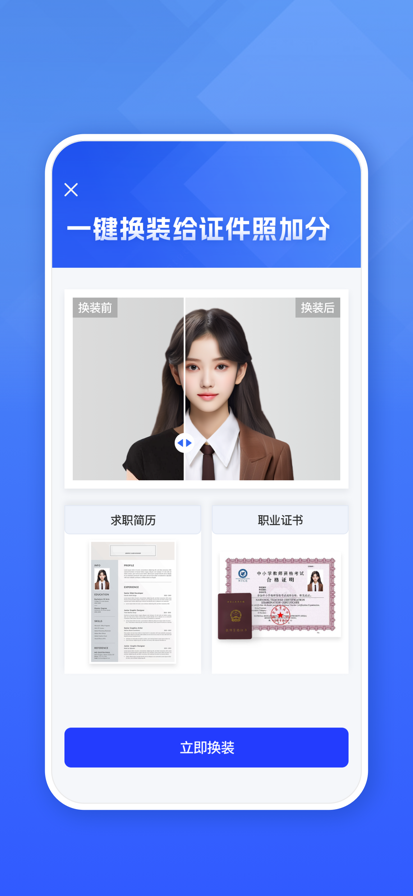 AI换脸,一秒穿上职业照,事业上的好帮手! 抖音小红书博主强烈推荐,制作职业形象照必备的神器!只需一张照片,轻松生成大片般的职业形象照!让别人羡慕起来。 【产品介绍】 职业照-职场求职工作简历形象照,运用智能的AI技术,打造三大炫酷功能,为想要职业照、形象照的小伙伴免去照相馆的烦恼。 == 三大酷炫功能 === 【智能AI人脸识别技术】 · AI换脸,一秒穿上职业照 · 强大的图像处理算法; · 人脸变清晰,多维度AI智能高清修复。 【你的身材你做主】 · 模特版的身材,一键制作 · 职业照的经典姿势,马上拥有 【傻瓜式的操作】 · 只要一张照片,就可一键制作,免费姿势烦恼,免去操作烦恼,一个人也可以轻松制作。 用户协议:https://nz9is37154.feishu.cn/docx/DRS8dntosowlPgxVbYYckYcln4g 隐私政策:https://nz9is37154.feishu.cn/docx/M2ZGdz4KAoNnzfxLKLmcGLWPnBg 订阅协议:https://nz9is37154.feishu.cn/docx/P1evdBFWJozLxGxnb3ocQ0aynEc