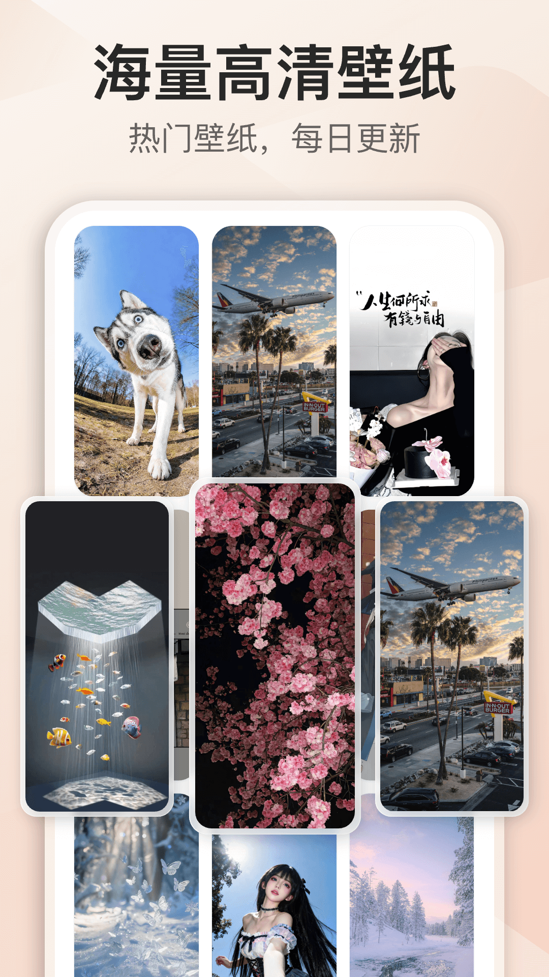百万高清无水印的透明壁纸,炫酷头像,主题套图随心换的背景图和心情图<br><br>数千万的图片,不同种类,每天更新,你想要的我们都有<br><br>在主题壁纸大全的圈子里,找到属于你的精美美图,体验不一样的感觉<br><br>#2024数百万小伙伴选择的搜图神器,让你的手机炫酷到爆炸#<br>【高清壁纸,同步热点】<br>百万高清无水印的壁纸,即使同步时下的热点,让你即使解锁受欢迎的壁纸,每张壁纸都是精挑细选,每天更新,让你每天都走在时尚的前端。<br>【精美头像,专属定制】<br>海量高清的头像资源库,定制专属你的个性头像,提供大量精美的头像,男生头像,女生头像,情侣头像,明星头像,动漫头像,炫酷头像,唯美头像和非主流头像,是80后,90后和00后更换头像的选择。<br>【背景图片,应有尽有】<br>好看的聊天背景图,一周的热门壁纸,朋友圈背景图,微信头像背景图,简约风格背景图,热门明星和动漫背景图,电影台词背景图,只要你想要的,我们都能满足你。<br>【主题组件,自由设计】<br>手机桌面添加音乐语音、炫酷时钟,偶像照片,文字图片,倒计时,纪念日等等,可以根据自己的想法自由组合设计,打造属于您自己的专属屏幕。<br>【灵动小岛,时尚灵活】<br>巧妙的将手机前置相机挖孔位置利用起来,配合通知消息,辅之以灵动动画,使其看起来不再单调。快捷打开主屏幕、截屏、锁屏、调整声音模式、锁定屏幕旋转等系统功能。<br>【聊天皮肤,动态透明】<br>手机没有自带透明壁纸功能也不用愁了,聊天时透明背景真的很有氛围感哦。还可以自定义本地照片设为透明主题,透明度可调节。<br>【心情图片,个性诠释】<br>不管你的心情是快乐还是悲伤的,在闪光壁纸的心情图里,你都能完全找到可以表达你心情的图片,它是完美诠释你心情的秘密花园。<br>【超全分类,个性内容】<br>帅哥,美女,动漫,明星,风景,美食,星空,自然,建筑,萌宠超多种分类应有尽有。<br>【轻量便捷,方便体验】<br>很小的内存占用,时尚个性的UI设计,给你们方便快捷的体验。<br>【联系邮箱】<br>感谢您的使用,使用中有任何问题可直接通过下述邮箱进行反馈。<br>内容来源于用户上传,如果您是某项作品的权利人或您发现某项内容侵犯了您的权利,您可以通过下述邮箱要求我们删除该作品或者断开连接。<br>woniu101@yunsiya.com