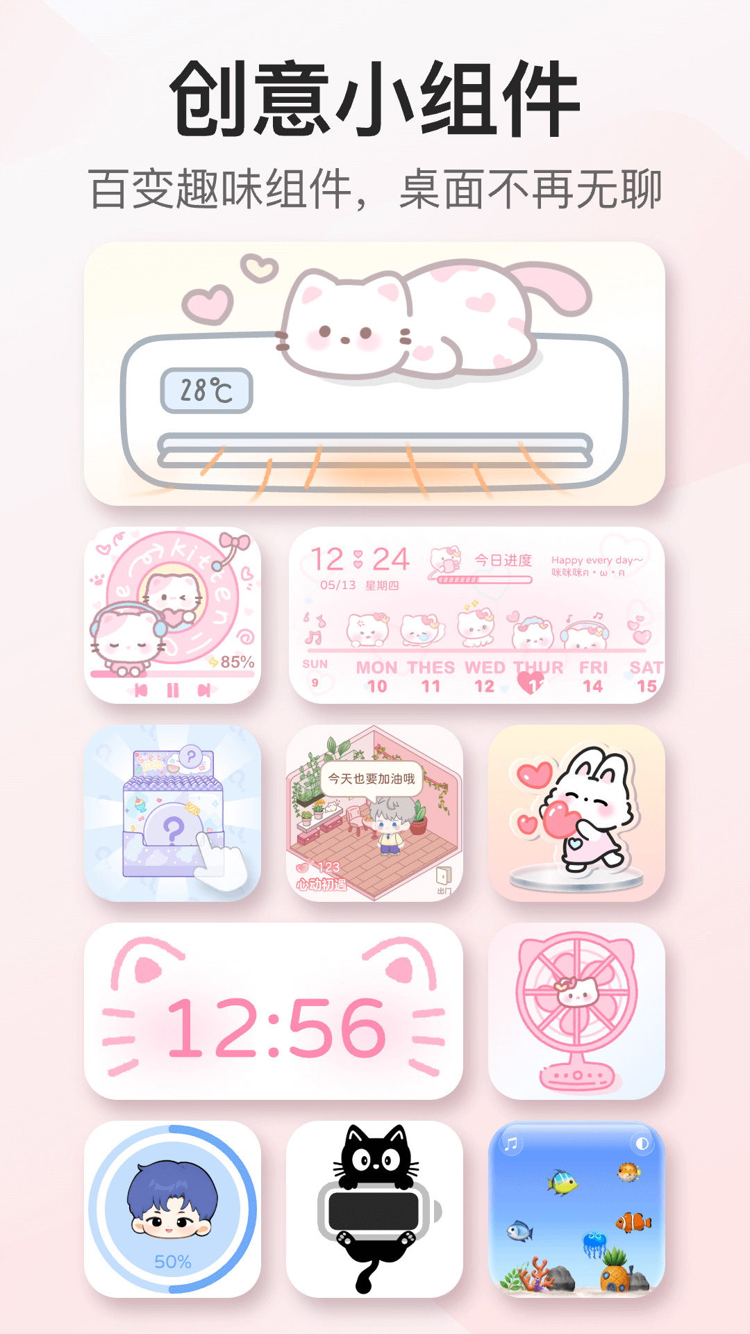 我的桌面iScreen是一款万能桌面小组件APP, 各种高颜值桌面主题,创意小组件自由组合,支持:X面板、照片、todo待办清单、数字时钟、极简时钟、日历、小目标、习惯养成、快捷启动、小决定等等实用又有趣的小组件一切满足您的需求。<br><br>上百个丰富桌面小组件,任你选择:<br>- 超多实用面板:【X-面板】在桌面展示手机的系统信息;自定义【快捷面板】快速打开目标应用,【APP面板】同时放多个应用,桌面布局整齐美观;还有天气面板、快捷启动面板、健康面板等等;<br>- 高颜值创意十足的时钟:超火爆的【打工人时钟】、根据时间变化的【大自然时钟】、简约【数字时钟、翻页时钟、表盘时钟、拟态时钟】、可以编辑文字的【文案时钟】等等多种尺寸样式的时钟任你选择;<br>- 创意小组件:超级解压的【戳泡泡、敲木鱼】,解决选择困难的【小决定】、环保型的【鲜花告诉我】小组件、带开关的【电灯】和【空调小组件】,创意【桌面语音】小组件,懂你的【我的心情】小组件,有什么不明白的快来问问万能的【答案之书】真的实用又好玩;<br>- 动态小组件:会动的风扇、摩天轮、风车让桌面变得有趣<br>- 倒计时小组件:简约型的倒计时,也可以编辑上传图片,还有各种【时间进度】;<br>- 图片小组件:简约图片、各种好看的【照片墙】模板供您选择,在桌面摆放自定义的照片简直是有个性的桌面;<br>- 任务小组件:每日坚持打卡的【小习惯、小目标】,还有各种任务清单一目了然的【todo-list】;<br>- 语录小组件:每日一读,每日一句,可以自定义语录或者设定系统自己更换;<br>- 日历小组件:多个好看的日历小组件。<br>··· ···<br><br>除了拥有超多小组件,还有各式各样的高颜值壁纸,简约风格、手绘插画、酷炫、动漫、影视...各种动态壁纸和静态壁纸全都能找得到!<br><br>使用我的桌面 · iScreen:<br>- 不复杂,简单操作,几分钟搞定手机桌面;<br>- 不同功能的实用组件,方便随时调用;<br>- 不同组件尺寸,大中小规格,满足个性化需求;<br>- 不限制个数,桌面小组件想放几个就放几个;<br>- 不拘泥设计,小组件支持全透明效果!<br><br>更多创意且实用的小组件不断增加中....简直就是个宝藏的桌面小组app!快来下载【我的桌面 · iScreen】DIY你的桌面吧!