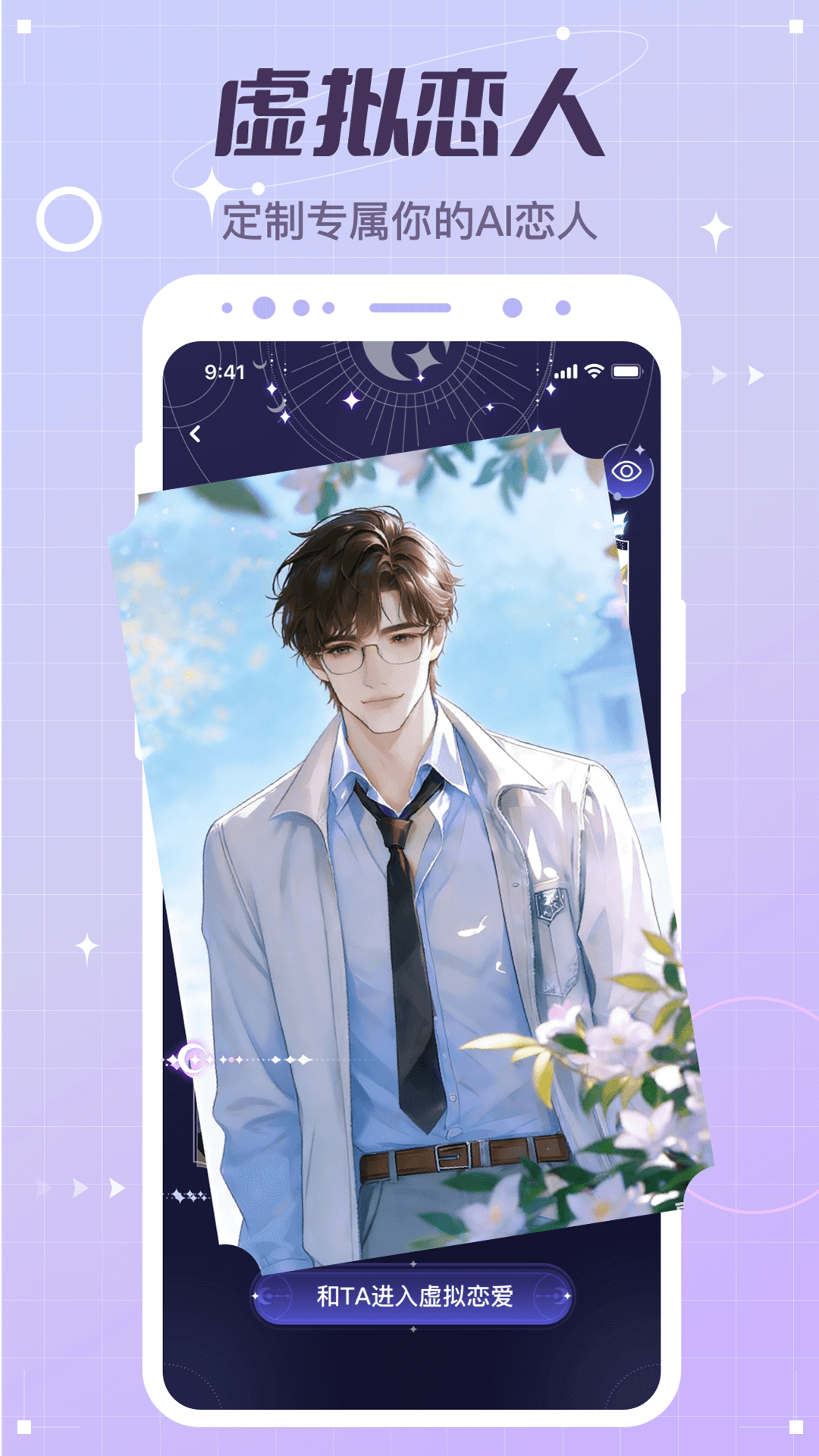 怕孤单,想脱单,就来虚拟恋人! 虚拟恋人是一款集虚拟聊天、恋爱,真人社交、语音连麦的陌生人恋爱交友APP,在这里可以帮助更多陌陌生单身朋友脱单、牵手、恋爱、找对象、处cp、语音聊天交友,系统自动匹配男女恋人,或在大厅发送恋爱滴滴、cpdd请求,直至找到陪伴你的人,快来体验一场虚拟恋爱吧! 软件特点 【精彩房间】K歌大比拼、虚拟相亲、才艺展示、实时聊天,丰富的房间玩法震撼上线,总有一款适合你! 【壕礼不断】拿到手软的福利红包,彰显身份的装备等级,壕礼纷飞,助你约会有缘的灵魂CP搭子! 【游戏互动】飞行棋、桌球比赛、数字炸弹等各种各样语音连麦桌游,一键在线匹配陪玩搭子,拒绝无聊,上演你的欢乐场,遇见你的挚爱! 【家族娱乐】喜欢温情满满的氛围?独霸大厅展现自己,家族上阵和你一起娱乐八卦,鱼声音好听的TA来一场线上娱乐! 【生活分享】点赞、吐槽、心灵悄悄话、在动态广场,分享你的精彩。在陌生人海中探探你的灵魂cp,找到与你心灵契合的TA! 【任性嗨聊】新潮表情,互撩互聊,随时随地开聊,好比在耳边轻语,比呼吸氧气一样简单,一言不合就发红包,再任性也没问题!