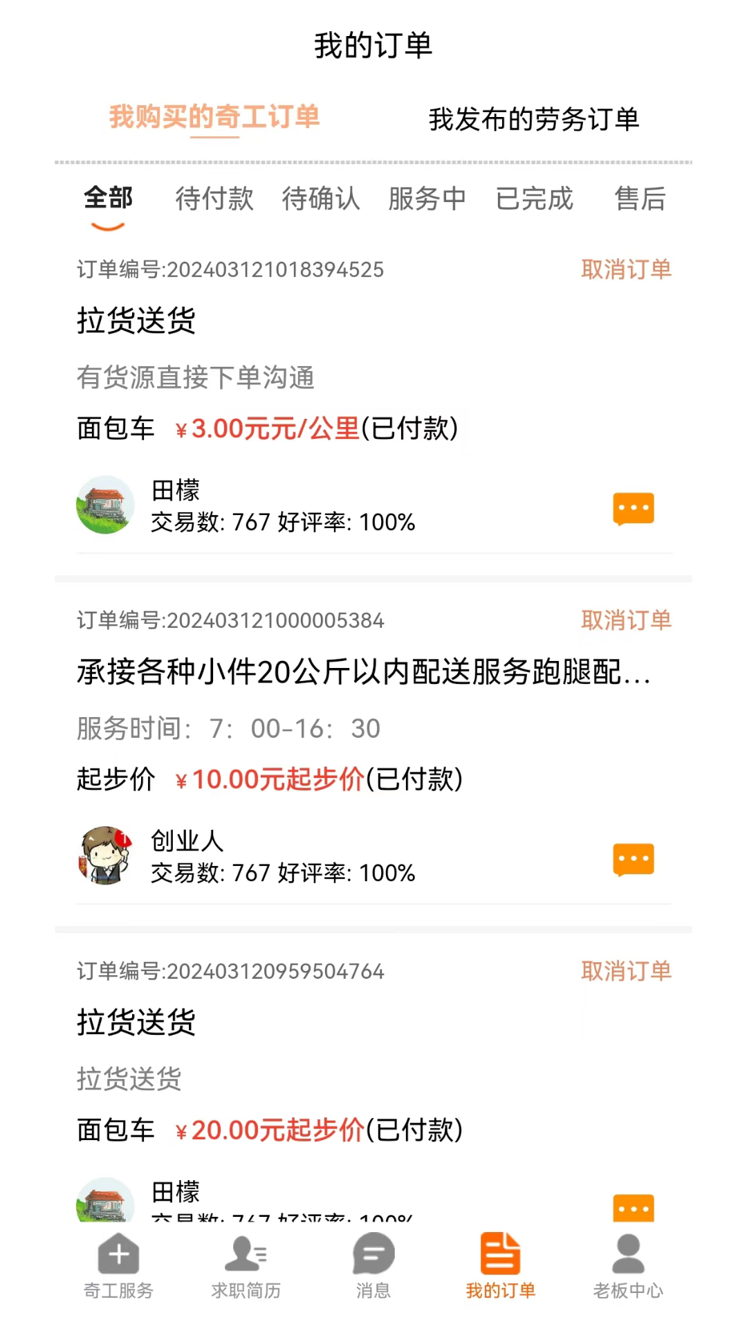同城即时送,60分钟必达<br>快服务是国内领先的同城速递创新服务平台,为用户提供即时送和同城当日达两项服务,已在全国300座城市开展业务,为数百万用户提供优质服务。<br><br>【服务介绍】<br>即时送:送蛋糕、送鲜花、送文件、取钥匙、取证件,专人闪送,24小时服务,想送啥就送啥。<br>同城当日达:同城4小时送达,比顺丰还快,同城快递、生鲜冷链。<br>同城代买:早餐夜宵、啤酒烤串、水果生鲜、超市药店、各类急用,全城帮买,急速送达。<br>跑腿代办:餐厅排队、医院挂号、代办缴费、代缴罚款、遛狗代养、生活服务样样行。<br><br>【服务保障】<br>专业配送员: 骑士实名认证、培训上岗、配备专业装备。<br>服务担保:明码标价、担保支付、平台监管、使用放心。<br><br>【联系我们】<br>网站:www.kfw.net<br>微博:@快服务<br>微信公众平台:快服务跑腿<br>邮箱:kefu@kfw.net<br>电话:400-068-0101