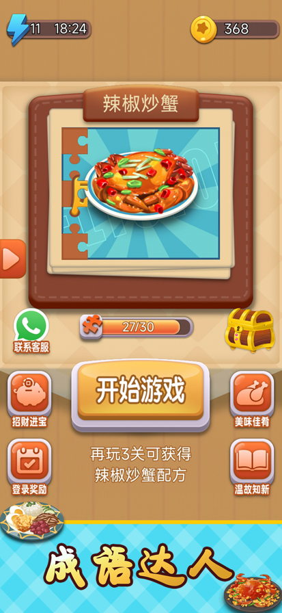 成语达人是一款休闲益智类文字闯关游戏。在游戏的过程中了解更多的成语知识,提升个人的文学素养,寓教于乐,带领你遨游在愉悦的成语世界中。 规则讲解: 游戏界面由填字区、选字区、提示区组成,在已有的文字提示下,将下方文字选字区中散乱的文字正确填入到上方9x9的填字区中,组成正确的成语,完成填字区中的所有成语获得游戏的胜利! 游戏特色: -关卡玩法:多样的玩法,难度花样递增 -规则说明一目了然,容易上手,操作简单 -海量的词库和关卡,让你百玩不腻 -轻快的游戏音乐,完美解压,舒缓大脑 -几种提示帮助你快速通关 -招财进宝、每日登陆,让你有领不完的奖励 -学而无厌:随时随地复习生词,学习新成语 -美味佳肴:一边玩一边收集美食,了解各地美食的文化 将成语和接龙的玩法结合在一起,画面清新动人,是玩乐与学习兼具的成语填字游戏,操作简单易懂,不论男女老少,都能轻松上手,快来挑战自己的成语词汇量,看看谁才是真正的成达人!