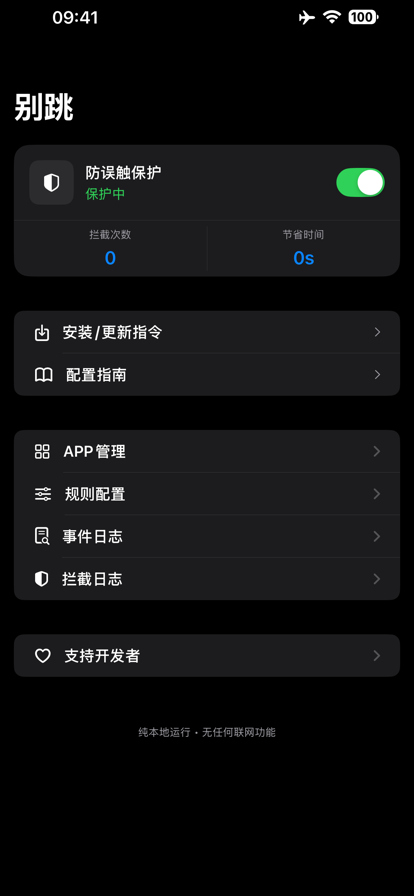 别跳是一款基于 iOS “快捷指令”与“自动化”功能构建的辅助工具。 用户可在系统中自行安装提供的快捷指令,并根据需要开启自动化。当自动化在某些场景被触发时,本应用会被唤醒,并根据你的设置提供提示或判断结果,帮助你在允许的范围内更快地回到之前正在使用的应用。 应用本身不会修改其他应用,不会屏蔽广告,也不会拦截系统行为,仅在被系统或快捷指令唤起后执行本地逻辑。 功能特性 - 基于快捷指令运行 别跳提供可选的快捷指令模板。用户手动安装后,可依照自身需求在“快捷指令”App 内创建自动化,以决定何时触发流程。 - 自动化触发后的本地判断 当系统按照用户设置触发自动化并打开本应用时,本应用会根据你提前配置的规则判断当前是否需要回到前一个应用。 - 可按应用管理启用与停用 你可以选择哪些应用启用,哪些不启用,使流程更符合你的使用习惯。 - 全程本地运行,不上传、不联网 所有功能均在设备本地执行,不连接网络,不采集、存储或传输任何个人数据。