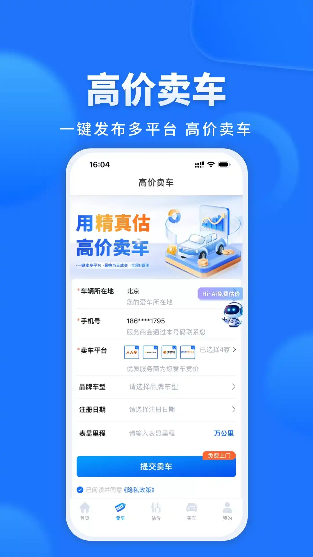 精真估,二手车估价,摩托车估价,高价比价卖车,二手车实用查询小工具,查出险、查维保、查综合车况 精真估二手车-AI二手车估价 【AI估价】 启用机器人“小真”,用户可通过与AI互动聊天,完成二手车估价并生成估值报告;可查询指定车系的保值率并生成保值率走势图 【保值率报告发布】 中国汽车保值率报告发布,月度、季度、半年、年度 【二手车估价】 免费估价:海量人工评估数据支撑,智能模型给价,免费、快速,卖车估价,买车查价 精准定价:考量实车基本车况、营运车等对车价的影响,实现二手车精准定价; 车史定价:一车一况一价,基于车辆出险及维保记录准确定价,事故大小、受损部位一目了然; 摩托车估价:常见摩托车车型,免费评估行情价 【卖车服务】 高价卖车,一键发布多个平台,最快当天成交,全程0手续费 【二手车实用小工具】 车型识别:快速识别车型,明确年款、高低配、详尽的参配信息,让交易更放心; 里程核验、车辆保险、维修保养:查询车辆详细的历史记录,OBD里程记录辨别调表车,出险理赔明细、维修保养记录,排查事故车; 综合车况:综合分析车辆出险理赔及维修保养明细,提示车辆重点事故。; 新能源车况:综合分析车辆出险理赔及维修保养明细,提示车辆重点事故,新能源车况内包含电池评级及健康度。 【买二手车服务】 更新快,真实可靠; 认证车商发布,海量二手车车源,价格人工核实