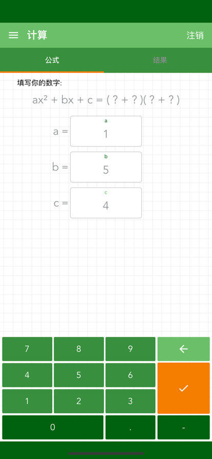 该应用程序使用自制算法将二次三项式转换为两个二项式的乘积。为此,只需输入三个变量。所有计算都存储在历史记录中。最终解决方案可以共享。 [内容] -必须输入a,b和c的变量 -将二次三项式转换为二项式的乘积 -历史功能保存输入 -详细的解决方案 - 正负数,支持小数 -选择删除广告 [用法] -使用修改后的键盘有3个字段用于输入值 -如果缺少值,则文本字段将突出显示 -您可以通过滑动和/或触摸按钮在解决方案,输入视图和历史记录之间切换 -历史记录中的条目可以手动删除或排序 -如果您在历史记录中选择了一个条目,则会自动加载该条目以进行计算 -可以通过按一下按钮删除整个历史记录