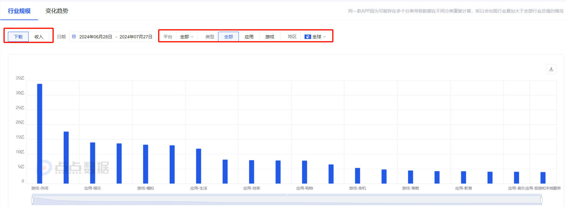 行业规模:把握大势,精准定位。点点数据提供应用及游戏下载收入数据,支持多维度筛选查看趋势,洞悉行业规模与发展。数据展现竞争格局与潜力,助力开发者精准定位市场,制定长远战略,把握发展先机。