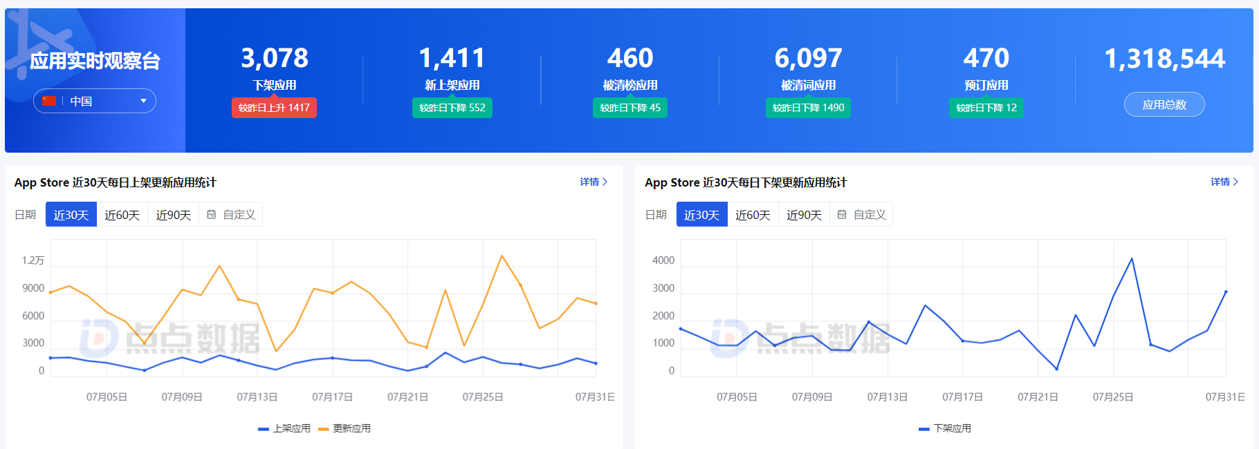 AppStore与Google Play动态尽在掌握:点点数据实时追踪两大主流应用市场的上下架情况,并通过精细分类统计,展现各类型应用的市场风云变幻。这不仅让开发者能迅速捕捉竞争对手的动态,还能通过对比分析,评估自身策略的市场反响,及时调整优化方向。