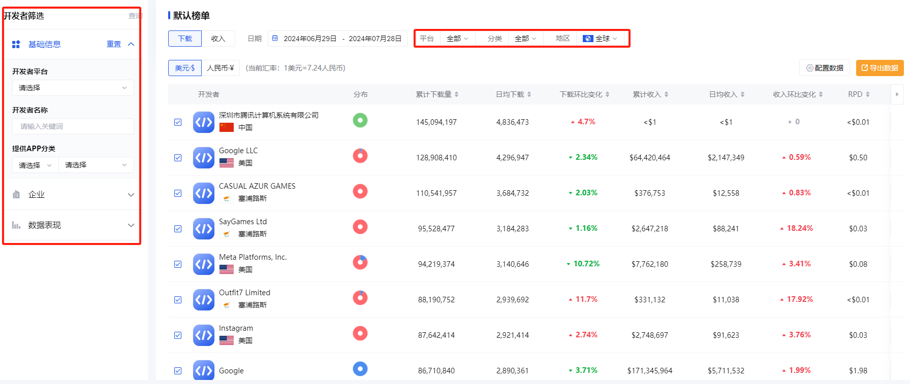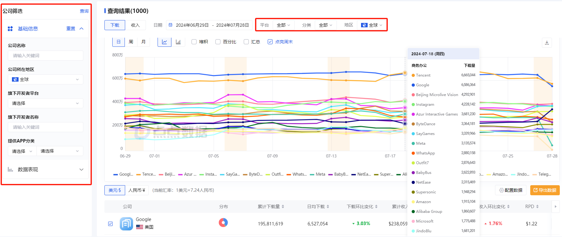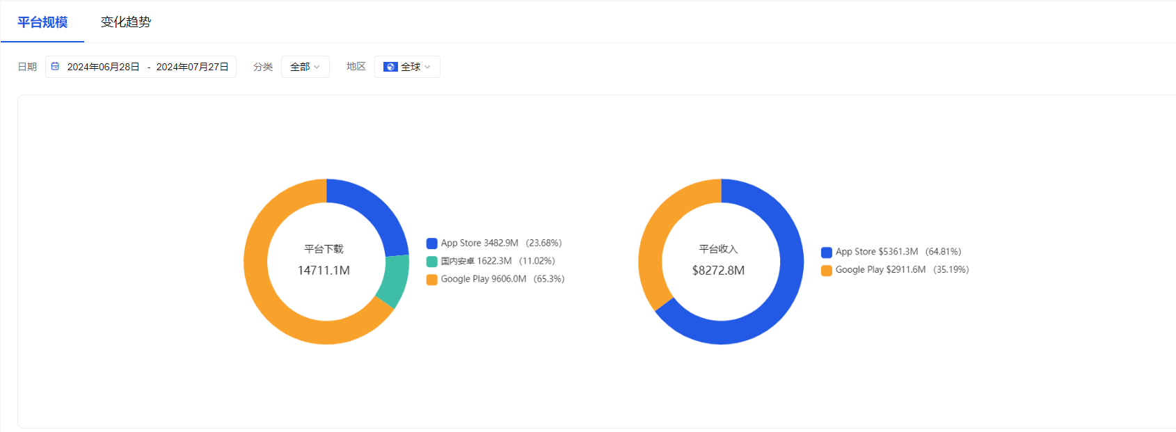 点点数据紧密关注移动平台发展趋势,精准分类追踪Google、App Store及国内安卓市场,为开发者提供全面的平台数据支持。通过类别筛选功能,开发者可以轻松查看各平台的下载与收入数据,为优化ASO与ASA策略提供有力依据。