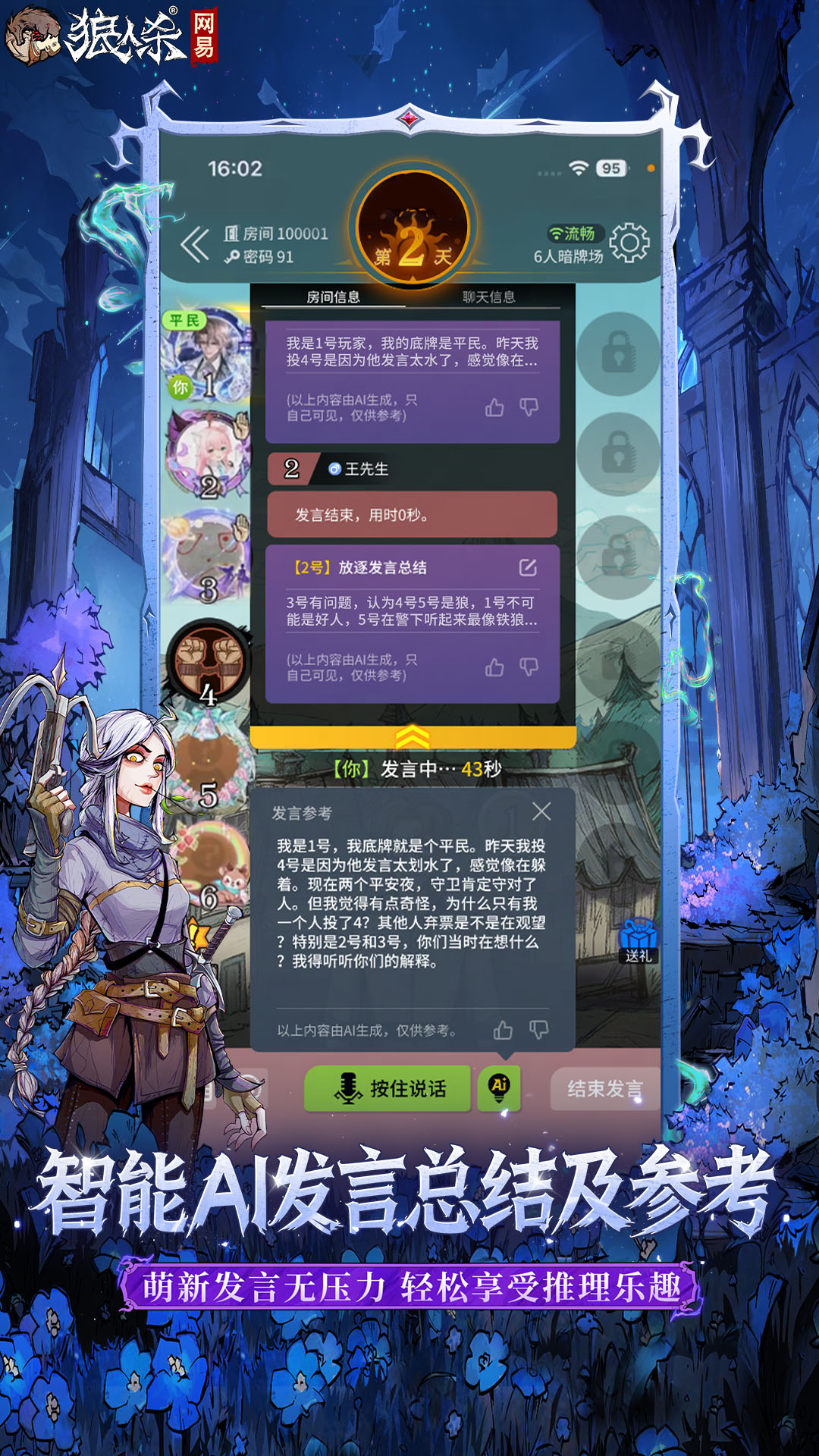 《狼人杀-官方正版》,每次组局只为与你相遇!让你实现轻松社交、素质推理!随时一键启动畅爽对局!集社交、推理、策略、趣味、角色扮演于一体,2亿狼搭子的质量首选,游戏体验有保障!不仅有贴心教学、分区匹配带萌新轻松上手;更有超多娱乐进阶模式,带你畅玩高阶趣味对局!在哪都能遇见有趣靠谱的搭子,每局都是新体验!<br><br>【主要特色】<br>■官方正版,明星主播都在玩<br>拥有狼人杀R相关商标,还原面杀玩法,带来沉浸式心跳体验!全网首发魔镜少女、觉醒隐狼、觉醒预言家、觉醒愚者、觉醒狼王、觉醒孤独少女、觉醒女巫、觉醒狼美人、觉醒猎人等角色,挖掘你的巅峰演技!人气主播、偶像明星每晚组局, 随时遇见你的心动~<br>■贴心教程,萌新小白秒上手<br>全面的新手指引,简单的操作规则,友好的匹配系统,贴心的“成长之路”指引,帮你迅速成长,立刻愉快开狼!还有智械板子带你体验不同角色趣味设定的全新玩法,观战模式围观大神百态,吃瓜群众的快乐随时拥有!<br>■公平烧脑,登顶荣耀狼王<br>聚集全网年轻人,不插麦、无延时,120秒畅所欲言,随时看票型,每一局都能秀出你的骚操作! <br>■趣味玩法,随时开派对<br>超多娱乐休闲玩法,无聊想说话,马上来派对!闲聊唠嗑、K歌听歌、互动交友、pia戏、CPDD…超多主题任你选!<br>■情侣装扮,秀出独特个性<br>国风“雪绒冬语”、二次元“偶像歌姬”、森系“蘑菇主题”……世界这么大,而你喜欢的风格,这里都有!搭配城堡、村庄、英伦小镇等特色主题,给你不同的沉浸式体验!<br>■步步相随,心动追逃<br>跑跑狼模式持续趣味更新!狼人潜伏搞破坏,好人抱团做任务!先看见,再推理!三分钟一局,发言少,爆笑多!跑跑狼王专列圆润来袭!可爱小狼在线跑酷!