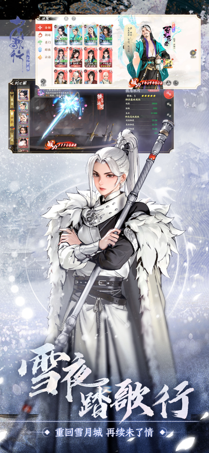 《少年歌行:风花雪月》是一款正版IP授权的国风手游,我们尽力为您呈现原作中刀光剑影、荡气回肠的武侠世界,每一个角色从形象到招式再到特效都经过精心设计与反复雕琢,力求不辜负每一份热爱。我们深知,少年歌行是少年人的故事,是年轻人的江湖,仗剑高歌、百折不挠的少年意气是每个人最强烈的共鸣,因此我们努力还原这份感动,精心制作了大量动态剧情,为您重现最初的热血与感动。 我们打造了一个丰富而生动的江湖。在这里,您不仅可以体验传统游戏主流的推关战斗,随着关卡进度体验主线剧情,也可以进入雪月城、天启城等其他城池,参与登天阁、无量山、蓬莱幻境、蛛网任务等丰富玩法,或者在剑心冢打造神兵,在良玉竞技场挑战其他玩家,在听竹书轩翻阅传奇故事,在宗门里与志同道合的朋友结伴而行……江湖百态,任君畅游。 《少年歌行》作为一部新武侠作品,小说、动画、电视剧都收获了不俗的人气,为无数读者和观众创造了一个瑰丽的武侠梦。游戏继承了原作的侠肝义胆与百转柔肠,这里有朋友并肩而行,有兄弟两肋插刀,有长辈生死相托,有佳人温柔解语。那些曾经触动我们的少年意气不止存在于画面与剧情的视听享受,更是方方面面融入游戏的多样玩法,让你身临其境地体验到一个充满生命力的武侠世界。 【游戏背景】 北离萧氏皇朝已历二百余载,风调雨顺,国泰民安。然而十二年前,魔教大举入侵,兵临天启城下。幸有雪月城城主百里东君出手,力挫魔教教主。大战平息不过八年,又有琅琊王谋逆一案甚嚣尘上。六皇子萧楚河为追查真相,不惜当庭顶撞明德帝,被贬为庶人,逐出天启。光阴流转,这些旧事渐渐被人遗忘,直到有一天,一个初入江湖的少年走进了一间名为“雪落山庄”的客栈…… 【游戏特色】 正版IP授权,原汁原味的少年歌行; 高度还原的人物与场景,精心设计的华丽特效,带您重温旧梦,更添新鲜体验; 北离皇室、天外天、雪月城、雷家堡、唐门、青城、暗河,数十位江湖名侠、数百种武学招式尽在掌握; 休闲挂机,不肝不氪,10连送不停,多重保底机制,白嫖全图鉴不是梦; 百变阵容,回合策略,多种技能流派挑战创意极限; 跨服竞技,宗门战场,多人互动不孤单。