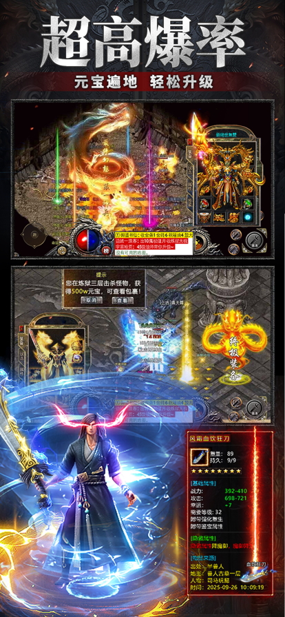 传奇再临,激情重燃!全新版本震撼来袭! 还记得当年通宵刷怪的热血吗?还记得兄弟们并肩攻沙的激情吗? 神界传奇——经典传奇重磅回归,全新版本诚意满满,带你重温青春,再战沙城! 【福利拉满,登录即送VIP 】 告别抠门游戏,我们只想宠你!上线即送VIP特权,海量元宝、极品装备统统免费送!日常奖励、在线奖励、等级礼包拿到手软,轻松起步! 【装备高爆,极品神装唾手可得】 告别无脑氪金,我们只拼人品!BOSS爆率全开,极品装备不再是土豪专属!!更有稀有材料、高级技能书等你来爆! 【组团攻沙,兄弟齐心再创辉煌!】 经典攻沙玩法重现,万人同屏热血激战!组建你的最强行会,与兄弟们并肩作战,争夺沙城霸主之位! 【公平竞争,数值平衡拒绝套路!】 一切装备全靠打,一切实力全靠拼!无论你是平民玩家还是土豪大佬,在这里都能找到属于自己的乐趣! 还等什么?赶快加入我们,重温经典传奇,再燃热血青春! 传奇再临,等你来战!
