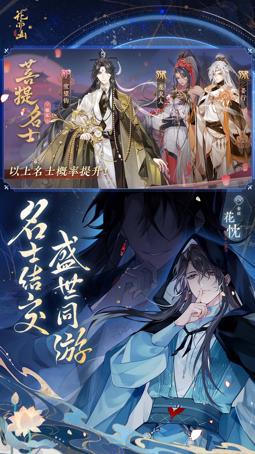 花亦山心之月「欲渡春时」全新活动剧情将于2月6日开启!全新名士「RP宣望钧」「RP风雪月」登场!乾坤颠倒,似景非景,误入其中见千人千面,百色欲念,如我见你,又如你见谁?更可免费领取累计61+抽、春节限定百抽等豪华福利!快上线领取吧~<br><br>【名士结交,盛世同游】<br>是杀伐决断的首辅,也是思想深邃的先驱; 是万人敬仰的亲王,却满怀无人理解的孤寂;世人皆说大公主气盛专强,又有谁曾得见其情纯真……与各色名士缔结盟约,解锁TA不为人知的故事,感受其中的粼粼波光与惊涛骇浪。<br><br>【权谋爽剧,风云迭起】<br>从皇家书院的闲适雅致,到朝堂之上的波谲云诡,看似平静的大景早已暗潮涌动,你能否在世家纷争的漩涡中找到治世之道?头顶风云变幻,脚下步步惊心。这一路,有明枪暗箭,更有惺惺相惜。<br><br>【颜彩金描,国风巨制】<br>以中国传统色绘制东方的古典神韵,以描金工艺勾勒盛世的雅致华贵。飞檐斗拱的亭台楼宇、恢弘壮丽的宫殿建筑,一展宣景的盛世气度;其间的岸柳飞花、碧空流云,尽显国风的无限意境。<br><br>【豪华声优,视听盛宴】<br>游戏特邀吴磊、苏尚卿、杨梦露、陶典等顶级声优倾情献声,殿堂级国风音乐大师林海配乐,在耳端构筑纷纭世界,以听觉呈现人物悲欢,营造极致沉浸的声画体验。<br><br>【美妆华服,互动休闲】<br>点朱唇、贴花钿,自由捏脸国风美妆。理袖带、弄金钗,华服万千随心搭配。还可品茶会友,行飞花令,打理花圃,在紧张刺激的权谋斗争之余,悠享惬意的闲适时光。