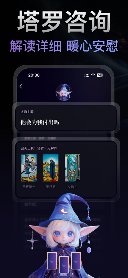 “曾经,我们都以为答案藏在塔罗牌里。直到遇见「月见」,才发现答案一直在心里。” ==== 月见App核心功能 ==== 【星盘解读】:100%为你定制的星盘解读,既能像和闺蜜聊天一样,轻松读懂自己的潜能。还能获取专业深度解读报告,发现人生的不同面向,月见小精灵随时陪你探索生命中的每个可能。 【塔罗咨询】:我们不只给你答案,更给你温暖的理解和陪伴。像最知心的朋友一样,用塔罗的智慧为你指引星光。 【灵魂伴侣】:从星盘DNA解码你的双生火焰灵魂伴侣!不仅能测算契合度,更能描绘TA的轮廓 【每日运势】:基于你的专属星盘与实时天象,解读你的每一天。让你在爱情、事业、财运的每个选择,都充满信心。 【情感记录】:记录下每个心动和心碎。月见小精灵始终在这里,听你诉说,让你看见自己内心的光芒。 “愿你在月见,遇见更勇敢的自己。” 使用本应用即表示您同意[Apple标准终端用户许可协议 (EULA)](https://www.apple.com/legal/internet-services/itunes/dev/stdeula/)。