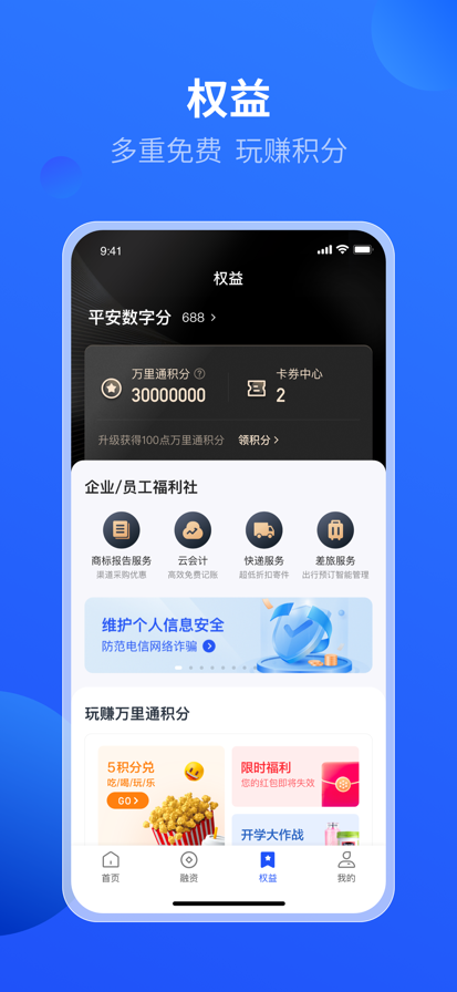 平安银行口袋财务全面升级为平安数字口袋! 平安数字口袋是一个为用户提供数字资产管理及综合性服务的全新平台。突破传统财务管理、金融服务的界限,以轻量级的用户体系提供一站式的综合性服务。 【限时福利】 新客贷款瓜分1亿减息红包 【金融】 精选金融产品,融资快理财灵活 集成融资产品,支持智能匹配、在线测额,审批速度快; 精选理财产品,灵活多样,期限丰富,购买便捷; 优选保险产品,多一份保障,企业经营更安心。 【权益】 多重免费,玩赚积分! 转账免费、贷款优先审批、0元享企查查专业版、知鸟培训等,还可签到领积分、兑奖品。 【账户服务】 7X24小时在线服务! 企业可在银行非营业时间内正常办理业务,转账即时到账,在线打印回单、下载月结单,通过空中柜台预约开户、更新单位信息等。 【数字证&数字分】 数据产生价值! 平安数字证连接用户服务与场景,帮助用户实现数据的跨平台流转及数据管理;平安数字分代表了用户在平安体系下的综合价值评估,让数据产生价值。