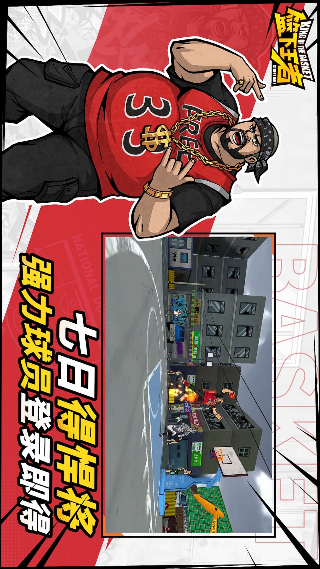 重返街头,showtime!3v3王牌篮球手游《街篮2》王者归来!3D画面高清升级,继承街篮优秀操控手感,保留其核心竞赛体验,并加入创新的个性化球员能力玩法。豪华阵容强力球员一网打尽;1v1隔人暴扣争当路人王;手感优化在升级,高清画质不卡顿;法老倾力助阵,打球嗨到爆!<br><br>【致敬前作,操作更简单】<br>继承街篮经典的虚拟摇杆+按键操作模式;操控简单,极易上手;语音开黑更默契!<br><br>【百变阵容,个性球员各显神通】<br>五大职业随心选择搭配;经典球员(简,424、玲珑等)重制回归;球员能力个性化定制,秀出你的个人水准。<br><br>【丝滑手感,隔人暴扣龙争虎战】<br>致敬街篮,手感再升级!高清画质细节不丢失,流畅手感丝般顺滑,花式炫技行云流水,一气呵成。<br><br>【DIY球场,自由创作秀出花样】<br>收录世界知名街球场(如日落东单,洛克公园等),更有球场DIY玩法,球场上的每个细节,涂鸦装饰,都在你的自由创作下,张扬个性的魅力。<br>年轻,就是要打破规则,无拘无束!<br>个性,就是要激情释放,放飞自我!<br><br>王者归来,showtime!3v3王牌篮球手游《街篮2》霸气归来,邀你重返街头,一起来打篮球!