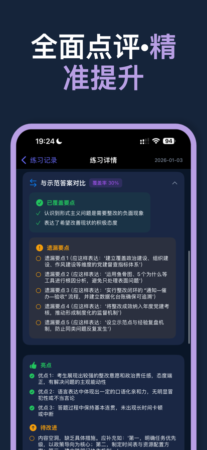 核心功能: 「遴选面试练习」 • 覆盖中央遴选、省直遴选、市级遴选真题题库 • 支持单题练习和套题模式 • 实时录音答题,1对1智能评分 • 摄像头实景模拟,还原真实面试场景 「遴选小班课」 • 名师1对1辅导,个性化教学 • 灵活选择上课时间 • 针对性提升面试表达能力 「有声讲义」 • 遴选专用音频课程 • 配套纸质版讲义邮寄到家 • 碎片时间高效学习 「遴选笔试」 • 人工批改服务,专业老师精批精改 • 视频课程讲解答题技巧 「为什么选择岸上星人?」 • 专注遴选考试,题库精准 • AI技术加持,智能评分 • 实景模拟,贴近真实考场 • 持续更新,紧跟考试动态 祝您遴选顺利,成功再上岸! 官网:jiuyuegongkao.com/linxuan 公众号:九月公考、岸上星人 小助手微信:jiuyuexiaozhushou 负责人丁九月微信:ding9yue