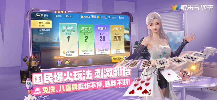 《微乐斗地主》是一款全国经典正宗扑克玩法合集手游!国民爆火玩法炸翻全场,专业赛事牌技为王,超人气主播都在玩!更有精美时装百变登场,海量福利狂送不停! 【全国经典正宗玩法合集】 你想要的斗地主、掼蛋、三打一、刨幺、跑得快、够级、锄大地、五十K……在这里应有尽有! 【国民爆火玩法 刺激翻倍】 娱乐玩法“免洗斗地主”、“至尊八喜牌”,畅快胡牌、爽炸不停,趣味不断! 【专业赛事不断 牌技为王】 公平竞技,秀出实力,以牌技拼出胜利!更有千亿豆、挑战奖励等海量福利狂送! 【超人气主播力荐 等你来】 超多人气主播都在玩,快来与主播同台竞技,一决高下! 【免费考级 拿IMSA权威认证证书】 实战即可免费获得IMSA世界牌类竞技联盟认证证书,国际权威认证,唯一编码全球可查! 【海量精美时装 百变登场】 百款服饰任意搭配,璀璨、典藏服饰焕然一新,时尚你说的算!
