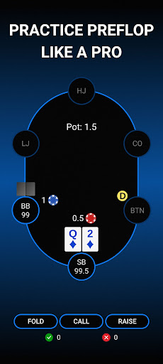 边玩边学!扑克训练器提供五项训练,助您精通扑克,无论您是新手还是老手。我们的扑克模拟器可帮助您提升牌技,建立自信,赢得更多!五项训练专为您量身定制,助您学习扑克。<br><br>训练模块:<br>- 翻牌前:像职业选手一样,使用 GTO 范围练习翻牌前,或自定义您自己的范围。<br>- 翻牌后:通过实时胜率计算提升牌局阅读能力。<br>- 牌型排名:成为快速识别和判断牌力的专家!<br>- 最佳牌型:学习如何从三手牌中挑选最佳牌型,并确定胜负!<br>- 赔率:学习计算和掌握赔率,赢得更多!<br><br>为什么选择扑克训练器应用?<br>- 离线练习:随时随地训练。<br>- 等级提升:通过等级提升来追踪您的进步。<br>- 游戏模式:测试您的技能,像 GTO 专家一样力争高分。<br>- 即时反馈:回顾错误并从中学习。<br>- 翻牌前数据:找出漏洞,并练习解决问题的点。<br>- 免费教程:免费课程,快速学习。<br><br>随时随地的扑克工具:<br>- 赔率计算器:查看您对抗对手牌型或范围的胜率。<br>- 范围查看器:探索简单范围和 GTO 范围,或创建您自己的范围。<br><br>随时随地训练——线上线下皆可!加入成千上万的玩家,像巫师一样训练和掌握 GTO。立即开始!<br><br>注意:扑克训练器纯粹是教育性质的,不提供在线或真钱游戏。欲了解更多信息,请访问 www.pokertrainer.se。