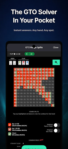 您的个人GTO翻牌后查找助手和扑克引擎AI解算器就在口袋里。无需进行复杂的树形构建,然后再购买肮脏的超级计算机即可运行翻牌后解决方案。我们做了所有的努力,并通过在您的手机上单击几下使您可以使用它。只需选择一个位置,输入您的底牌,板子和瞧!您可以看到所有可能的转弯和河流的GTO线,并具有确切的频率和EV。<br><br>Poker Solver +结合了翻牌前范围和翻牌后解决方案,为您提供最直观,最全面的端到端解决方案。从字面上看,访问您的解决方案需要几秒钟。解决了不同堆栈大小的最多6个现金和MTT的问题,可以随时使用。现在不要错过!<br><br>包括但不限于的某些功能包括<br>-所有翻牌前位置的直观范围查看器<br>-能够输入任何翻牌,任何转牌和任何河牌<br>-可以输入不同的行以查看GTO频率如何变化<br>-查看确切的频率和电动汽车<br><br>总是有更多的斑点和问题解决。现在下载。请注意,这不是RTA,因此不应在桌上为扑克决策提供实时帮助。因为使用RTA(实时协助)工具违反了许多扑克网站的服务条款。