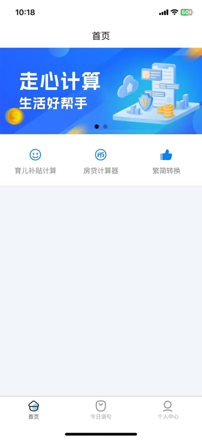 工具应用包含: 1.育儿补贴计算器:输入出生日期,计算育儿补贴 2.贷款计算器:支持商业贷款、公积金贷款及组合贷测算,可自定义输入贷款利率,实时匹配最新银行政策; 2.繁简转换:双向转换简体与繁体中文,办公学习效率倍增 4.每日一句:每日推送温馨语录,打造专属正能量时刻