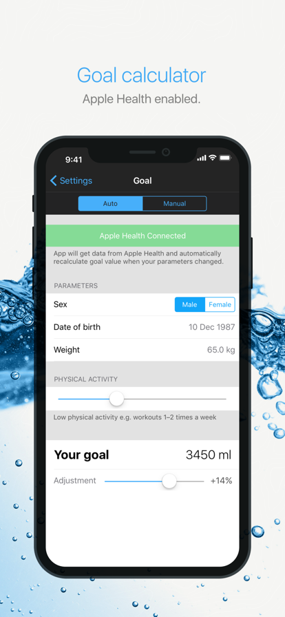 每日消耗的水量对于人体健康非常重要。对于健身、锻炼和节食的人来说,控制水的摄入量尤其有用。 水可以去除人体内有害物质,让您塑造体型,焕发精神! Watercheck可以帮您控制您的水平衡。可以轻松设置提醒,友好的用户界面可以方便地解决这个问题。 应用程序特色: * 选择每日摄入量 * 通过主容器方便输入容量 * 可以编辑容器 * 两种测量系统(公制和英制) * 提醒 * 通过图表查看每日统计数据 * 精简界面,基于手势操作 * 方便的今日小工具,支持Apple Watch ---- 应用程序集成了Apple Health。它计算每天的量和写关于你的水消耗数据。 立即安装应用!追踪每日对水摄入量的需求。变得更健康!