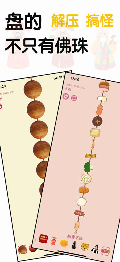 电子佛珠,模拟真实念佛珠,模拟真实音效和震动效果,支持手动念珠和自动念珠。 万物皆可盘,盘一盘,解压搞怪音效,停不下来。 包括:佛珠、我要下班、我向佛祖许愿、嗑瓜子、恭喜发财、财福寿禄喜、到账音效、叫卖声、击毙你、亮剑开炮音效。 更多音效持续加入中,敬请期待!