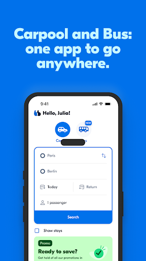 拼车和巴士:使用 BlaBlaCar 应用,畅游四方。<br><br>比较并预订最优惠的出行方案,享受低价出行。从数千个目的地中选择,以更低的价格畅游乌克兰、波兰、罗马尼亚、匈牙利或塞尔维亚!<br><br>一个应用,尽享超值优惠<br><br>比较巴士和拼车方案,找到最经济实惠的出行方式。<br><br>使用应用预订前往数千个目的地的低价行程。<br><br>降低您的驾车成本<br><br>开车出行?几分钟内即可分享您的空位,降低燃油和过路费。<br><br>一切由您掌控:通过查看评分和会员认证资料,选择与您同行的伙伴。<br><br>拼车直达目的地<br><br>预订座位,直达您的目的地。找到附近的出发车辆,抵达更靠近目的地的地方。<br><br>查看会员资料和评分,安心出行。<br><br>值得信赖的巴士出行<br><br>从我们数百家官方巴士合作伙伴处预订车票,并通过我们的帮助中心随时获得支持。<br><br>有任何想法或建议?请通过以下链接向我们提供您的反馈:https://www.blablacar.co.uk/contact<br><br>注意:在后台运行 GPS 会显著降低手机的电池续航时间。
