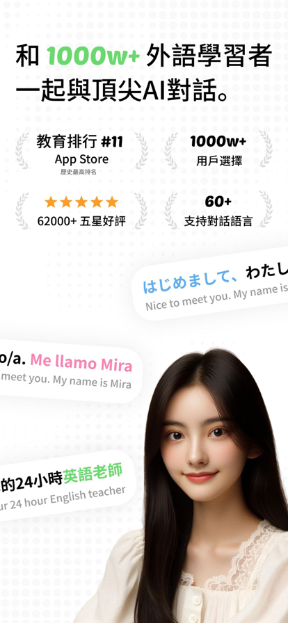 你是不是一开口说英语就紧张?想学好英语,却没时间去上课?试了很多方法,但还是觉得说英语很难?我们懂你! 学英语不容易,每个人都有自己的步调,传统方法不一定适合每个人。 但是,有我们在你身边!认识一下你的新朋友:EF Hello 里的 AI 老师 Addi!Addi 就像你的随身英语家教,帮你量身定制课程,随时随地陪你练习,助你轻松自信开口说英语! 【AI 智能外教 1 对 1 辅导】 AI 老师 Addi,为您提供全天候个性化辅导。无论是发音校准、语法纠错,还是商务谈判模拟,Addi都能像真人外教一样实时互动,而成本仅为传统课程的 1/10。 【5 分钟高效学习】 时间碎片化?我们懂。通勤、午休、睡前……打开 App 即可开启 5 分钟情境课程,涵盖职场邮件、留学面试、旅游问路、日常闲聊等 8000+ 实用场景,让每一刻零散时间都成为进步的阶梯。 【千人千面定制化课程】 根据你的学习目标和英语水平,为你匹配从零基础到高阶的专属学习路径。偏爱商务英语?看重日常交流?你的兴趣就是课程的起点,告别“一刀切”的传统教学模式。 【8000+ 英语实战场景】 ► 商务专区:写邮件、写年度总结、和领导聊绩效考核、跟供应商谈判价格……千百种主题任你选,助你无压力轻松搞定职场英语。 ► 留子必备:雅思托福口语实战模拟、日常 smal talk 聊天气、课堂演讲、医院问诊……最接地气的海外生存指南,让跨文化交流零障碍。 ► 在校学生:课堂 PPT 演讲、四六级突击、外教课互动、社团活动主持……告别哑巴英语,轻松拿下奖学金加分项! ► 环球旅行家:机场值机、民宿砍价、街头问路、免税店血拼……用 8000+ 万能对话,解锁 90% 旅行场景,社恐也能玩转地球村! 【精准攻克四大口语刚需】 ► 发音教练:通过语音评分系统逐词对比母语者音频,实时反馈连读弱读问题,助你练就地道口音,拒绝发音羞耻,从此自信开口说英语。 ► 听力特训:英孚精选视频语料,配合实时字幕+重点词汇,结合听力特训习题,让你轻松捕捉英美口音! ► 语法导师:语法错误实时讲解,通俗化解析,对每一道错题原因都了然于心,真正把知识记在心里。 ► 表达搭档:在真实场景中模拟对话,AI 实时建议超地道的表达,帮你告别“中式英语”,轻松掌握商务谈判和日常闲聊。 【全技能英语提升体系】 独创“系统学习+沉浸练习+真实应用”三维闭环训练法,从“学懂”到“会用”,步步为营打造自信英语力! ► 系统学习:通过结构化课程掌握核心知识点,搭配 AI 精讲拆解语法难点与发音规律。 ► 沉浸练习:通过硬核习题反复磨练技能,复习所学内容,实时获取 AI 提示与问题纠错。 ► 真实应用:AI 伙伴模拟 8000+ 实战对话,参与商务谈判模拟、留学情景演练,让你真正开口说英语,摆脱英语焦虑,建立口语自信! 【百万用户信赖之选】 ► 荣膺 2024 年 App Store 年度文化影响力应用! ► 全球累计收获 234,000+ 五星好评,应用商店评分 4.9,全球数百万的英语学习者的理想之选! ► 英孚 60 余年全球教学积淀,由资深语言专家团队匠心打造,课程品质经得起时间考验。 想象一下,不论在哪里、什么时候,都能大方地说英语!选择 EF Hello,不仅让你英语更流利,还能增加自信、拓展朋友圈、让生活变得更丰富。 现在加入!每天只要 5 分钟,通过有趣的情境对话练习英语,逐步提升自己。 喜欢 EF Hello?快来试试吧!现在有 7 天免费体验,解锁全部课程,随心学! 有问题别担心!在 EF Hello app 里摇一摇手机,或直接发邮件到 efhello@ef.com,告诉我们你的问题或建议,我们会认真倾听! 服务条款:https://hello.ef.com/terms-of-service 隐私政策:https://hello.ef.com/privacy-policy