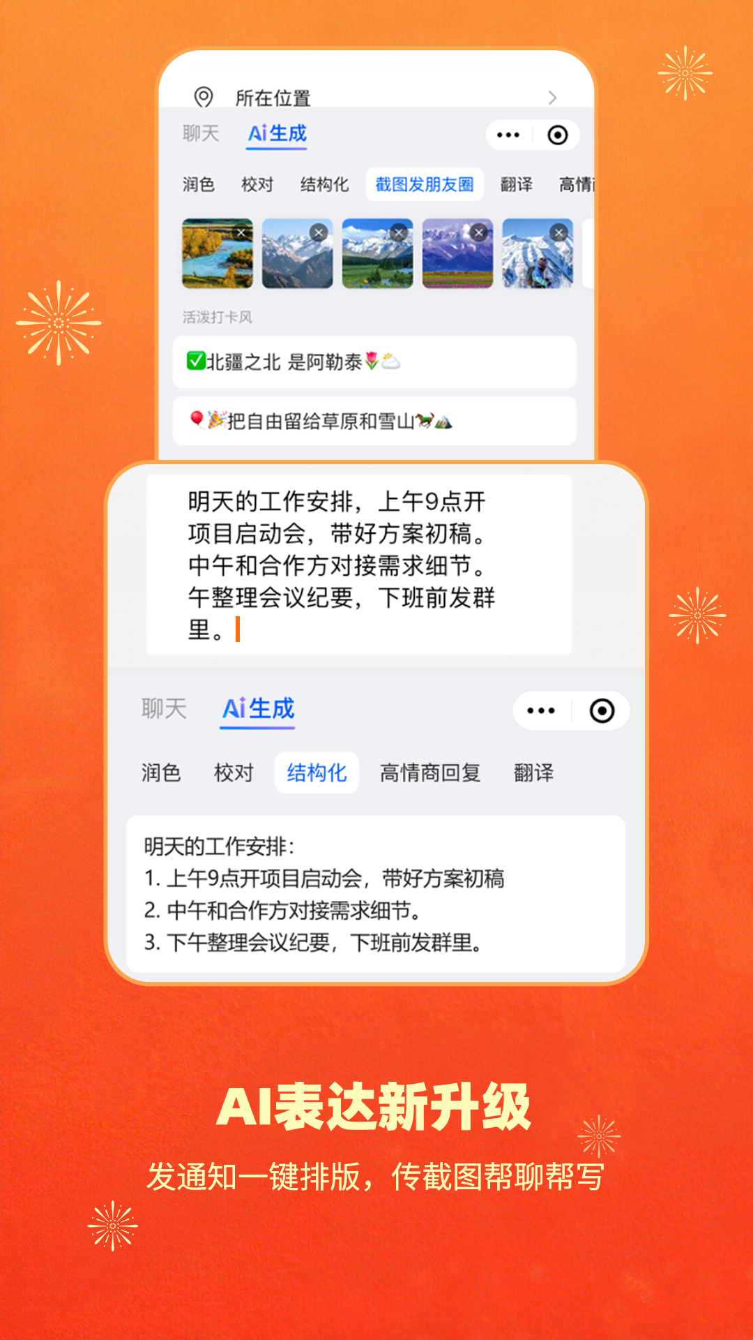 AI 键盘更智能更好用<br>讯飞输入法,融合讯飞星火大模型,行业首创【AI 键】、一键开启个性化AI功能,输入更懂你。语音输入高效准确,拼音、手写流畅自如,输入更快更好用。更有键盘皮肤、表情、聊天气泡、头像、壁纸,海量装扮有趣有颜<br><br>特色功能<br>【AI语音输入】1 分钟 400 字高效准确,支持离线语音、无网弱网依然准确识别,支持202种方言、30多种外语随心说,输入更快更好用<br>【键盘AI键】行业首创AI 键,活力视界布局下匹配场景、风格,一键AI 帮写、润色、链接智能服务,输入更懂你<br>【键盘装扮】海量皮肤、字体随心选,装扮你的专属键盘,输入有趣更有颜<br><br>亮点功能<br>【拼音输入】丰富词库,智能纠错,丝滑联想,AI预测输入覆盖多种表达场景<br>【手写输入】拼音键盘直接手写,支持叠写连写,手写出拼音、无惧生僻字<br>【AI翻译】语音文字实时翻译,轻松打破语言壁垒<br>【AI助手】高情商沟通、恋爱军师、百变人设、写作达人等多种助手能力,帮你展现多面魅力<br>【AI剪贴板】手边“智能小助理”,支持智能回复、仿写、拆词、翻译、搜索等快捷操作<br>【Biu星球社区】创作者兴趣社区,与同频共振的TA互动交流分享有趣好玩的内容<br>【斗图表情】Emoji、颜文字、表情包等海量表情资源,支持打字出表情、关键词搜索,无需收藏、便捷使用<br>【键盘计算器】数字键盘变身计算器,计算又快又准<br>【游戏键盘】匹配游戏场景,定制语音沟通更快捷<br>【按键音效】支持自定义,打字妙趣横“声”<br>讯飞输入法【有AI键的输入法】,为你量身打造的【专属输入法】,因为懂你所以好用<br><br>===期待你的声音===<br>微信官方公众号:讯飞输入法<br>微博官方账号:@讯飞输入法<br>或者打开讯飞输入法APP,点击[我的]-[设置]-[意见反馈]<br>每一条消息我们都会认真阅读,真诚期待您的反馈哦!
