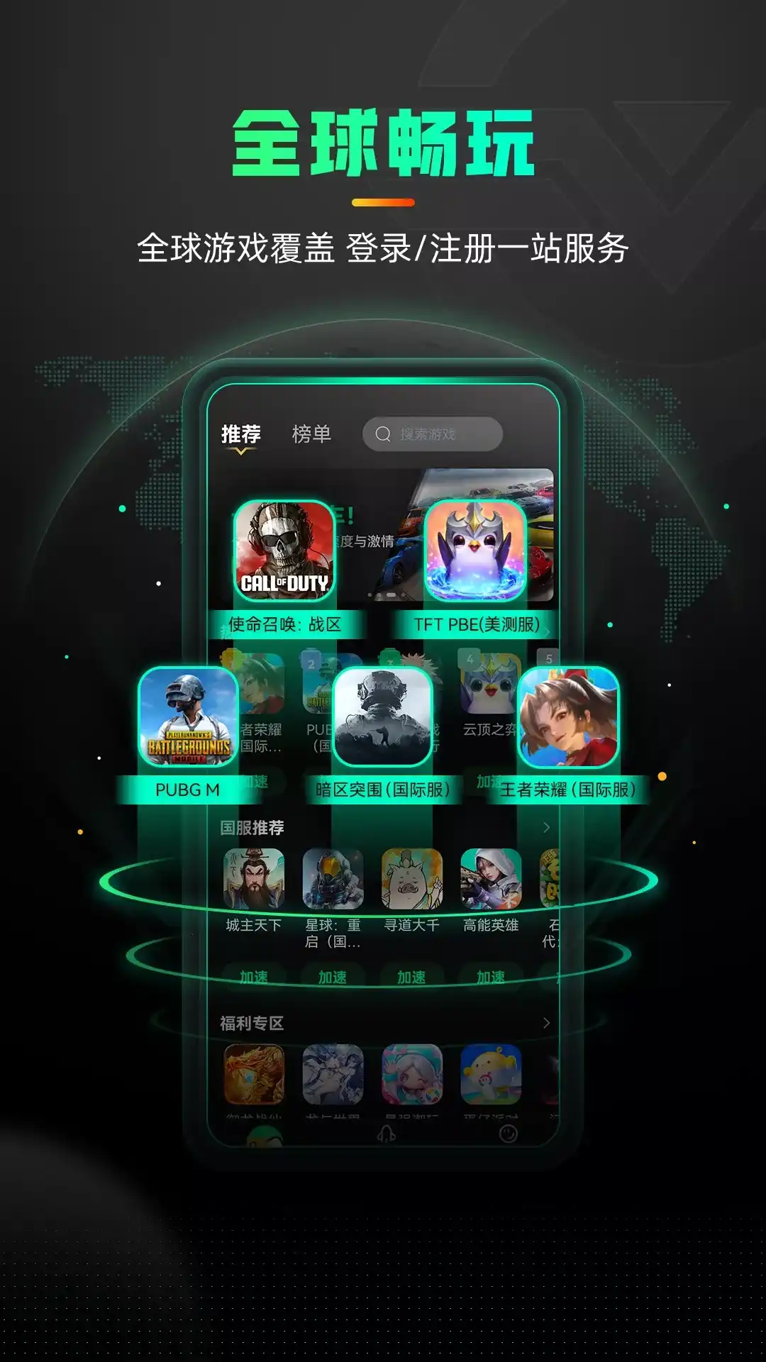 【 热门游戏,“游”先支持】 支持PUBGM、王者荣耀国际服、使命召唤战区、绝地求生:刺激战场、吃鸡外服、鹅鸭杀手游,暗区突围国际服、飞机大厨、咒术回战、宝可梦大集结、战地手游、瓦罗兰特手游、剑灵2、英雄联盟手游(lol:wild rift)、云顶之弈手游等游戏加速! 【海量手游库 新游上线快 】 支持PUBGM、王者国际服、使命召唤战区、星际战甲国际服、炉石传说国际服、暗区突围国际服、飞机大厨、对峙2、云顶之奕、鹅鸭杀、赛马娘、pubg2、暗黑破坏神不朽、apex手游、二之国、全境封锁手游、战地手游、瓦罗兰特手游、绝地求生刺激战场全球服、使命召唤手游全球服、八方旅人、符文大地传说、Among US、游戏王、方舟生存进化、黎明杀机、公主连接、冒险岛M、地球末日生存、Teon中文版、剑灵:革命、战争机器人、地牢猎手5、FIFA、碧蓝幻想全球服、iron force、世界计划、多彩舞台、第七史诗(epic 7)、和平精英全球服、堡垒之夜、fgo、影之诗、失落龙约黑色沙漠、文明重启全球服、荒野乱斗、狂野飙车9等游戏加速!游戏库包罗千款好玩游戏,热游新游排行一目了然。平均每天3款游戏的速度上