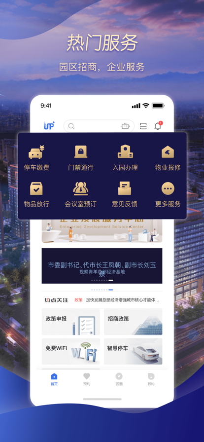 【内容摘要】 UP+是成都市兴城建实业发展有限责任公司面向青羊总部经济基地园区推出的一款创新型移动应用APP,以一屏一端进行园区生活、办公、管理为特色,打造智慧园区运营服务平台。 【热门功能】 1、园区资源服务 在线预订会议室,园区广告位,简化业务办理流程。 2、停车缴费 在线缴费、申请月卡、绑定车辆,助您轻松停车。 3、门禁通行 在线录入人脸,实时认证审核,查看通行记录,简化员工考勤,还可一键邀请访客。 4、物业服务 装修申报、物业报修,物品放行。强化事件跟踪,改造传统物业管理模式,提升物业服务能力。 It's UP+,快来下载,尽享园区服务新体验。