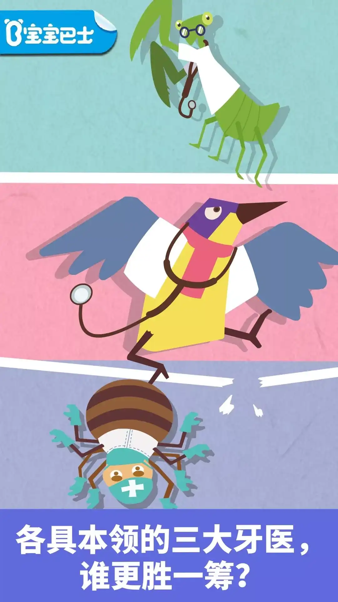 让宝宝体验牙医的治疗过程,帮宝宝克服对牙医和拔牙的恐惧! 宝宝巴士儿童应用【宝宝小牙医】医院开张咯! 各具本领的三个小牙医,用你意想不到的方式来保护牙齿! 拔牙、治疗龋齿、牙齿清洁……各种牙齿问题,在这里都能顺利得到解决! 这个医院里,没有吓人的大钳子和听诊器,只有有趣益智儿童早教互动!宝宝巴士,全球早教应用品牌,给宝宝一个快乐童年! 产品特色: - 新颖有趣的治疗方式,保护牙齿也可以很有趣; - 通过角色扮演的互动,让宝宝消除对医生的恐惧,不再害怕拔牙、治牙; - 8个可爱角色,6种不同互动,欢迎宝宝尽情探索。 宝宝巴士(BabyBus)是专注打造儿童启蒙数字产品的原创品牌,累计服务全球5亿家庭用户。宝宝巴士秉承“快乐启蒙”的理念,用奇妙有趣的方式为儿童提供免费的数字内容,量身定制“好听”(国学故事)、“好看”(儿歌动画)、“好玩”(互动APP)等系列内容产品,让孩子在趣味中认知世界,感受“真、善、美”。 宝宝巴士(BabyBus)是全球5亿家庭用户的选择,陪伴宝宝快乐成长,让宝宝学会独立思考,享受探索世界的乐趣。同时也为家长们提供专业、全面、丰富及个性化的启蒙产品。 【宝宝巴士】儿童启蒙app,获得宝宝巴士世界、宝宝巴士儿歌、宝宝巴士故事、宝宝巴士奇妙屋、宝宝巴士、恐龙王国、宝宝恐龙家园、宝宝梦想小镇、宝宝爱整理、公主化妆舞会、宝宝救援队、宝宝建城市、时尚小公主、奇妙宠物美妆店、宝宝爱水果蔬菜、宝宝动物世界、化妆小公主、宝宝甜品店、奇妙运动日、宝宝魔力画笔、宝宝航海挑战、宝宝幼儿园、奇妙碰碰车、奇妙美味日记、奇妙企鹅部落、奇妙生日派对、奇妙梦幻城堡、奇妙昆虫日记、奇妙的动物家庭、奇妙珠宝店、奇妙地下王国、宝宝家庭日、奇妙怪物美容、宝宝美食派对、奇妙鲜花房、宝宝台风天气、宝宝家园清洁、奇妙思维闯关、宝宝庄园、奇妙寻宝冒险、宝宝神奇厨房、宝宝摩登照相馆、奇妙小马俱乐部、奇妙星际宇航员、奇妙恐龙帮帮队、宝宝美食帮帮忙、奇妙环游世界、宝宝救护手册、宝宝动物拼贴、宝宝消防安全、宝宝鸟类认知、宝宝小牧场、宝宝环保手工、宝宝梦想职业、宝宝天气认知、奇妙春游日、奇妙咖啡餐厅、奇妙蛋糕店、奇妙料理餐厅、奇妙小茶园、宝宝启蒙认知卡、宝宝音乐派对、奇妙认知百科等使用者的一致推荐。 欢迎联系: 微信:宝宝巴士 微博:@宝宝巴士 官网:http://www.babybus.com 邮箱:cn@babybus.com