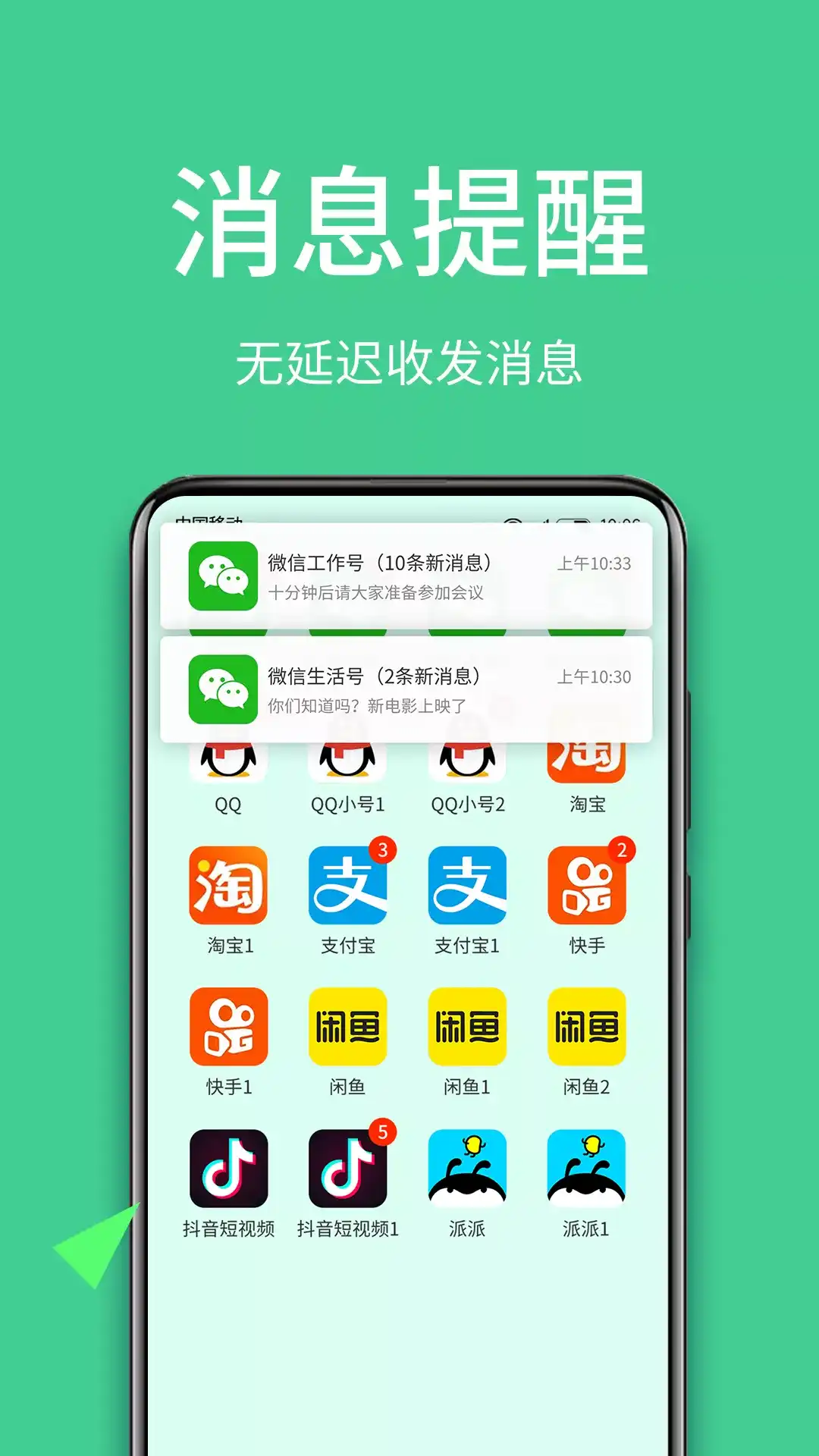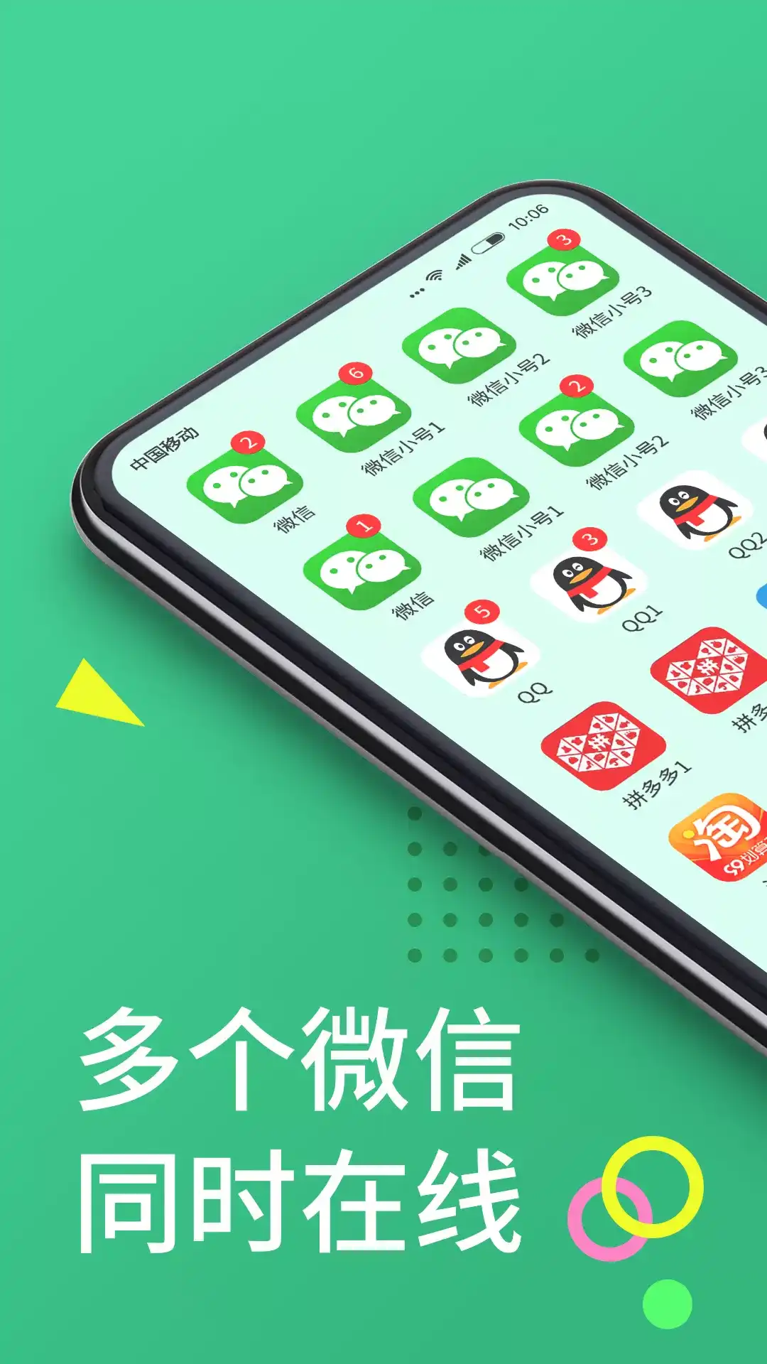 微信分身王支持32/64位微信的微信分身、微信双开、微信多开,兼容安卓14!轻松实现应用游戏双开、多开、分身,重点适配每个微信分身版,一部手机轻松实现微信2应用分身账号同时在线! 【应用游戏多开分身 游戏挂机神器】 ●免费双开:支持微信、QQ、淘宝、支付宝、抖音、王者等应用游戏微双开/微分身,小号分身源自官方,独立运行,分身体验与原版应用一模一样; ●无限分身:独立研发的应用多开功能,实现京东、赞丽生活、派派、快手等应用多个小号同时在线,不限多开个数,解决多个账号频繁切换登录的烦扰; 【我们一直在努力】 ●独立桌面图标:长按软件内分身APP图标,可进行添加桌面快捷方式,双开的应用在桌面就可使用,方便快捷; ●消息提醒设置:多个微信,同时在线,无延迟同时收发消息; ●自定义分身名称:长按软件内分身APP图标,可进行分身账号图标和名称自定义,方便管理,无需担心开错号;