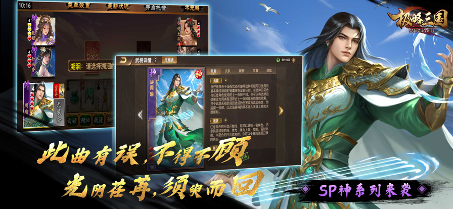 游戏简介: 极略三国(原三国KILL)是一款单机三国策略卡牌游戏,支持蓝牙或WiFi局域网联机对战。此外,极略三国向广大武将DIYer有奖征集了很有优秀的设计,在策划的筛选和修改下集成与优化了很多优秀的民间武将。精致唯美的武将原画和皮肤,别具一格的武将台词也是游戏一大亮点之一。除去经典5-8人局模式,我们还有别具匠心的设计了征服模式、无尽模式、三英模式、闯关模式、挑战模式、破阵模式。 故事背景: 滚滚长江东逝水,浪花淘尽英雄。是非成败转头空。在游戏中,共有四种身份:主公、反贼、忠臣、内奸,玩家将扮演三国时代的一位驰骋沙场的武将或运筹帷幄的文官,结合自己的身份,用战术和谋略寻找与自己目的相同的队友,并与之配合,击败敌人,获得最后的胜利。 极略三国新部将系统! 集齐九灵珠,没有神龙。 只有智慧与实力并存的主公,才能召唤无敌左幽~ 【玩家群】 极略三国-壹群:1083303253 极略三国-贰群:190849123 极略三国-叁群:212601349 【联系我们】 官方微信公众号:极略三国(btsanguokill) QQ服务号:800049454