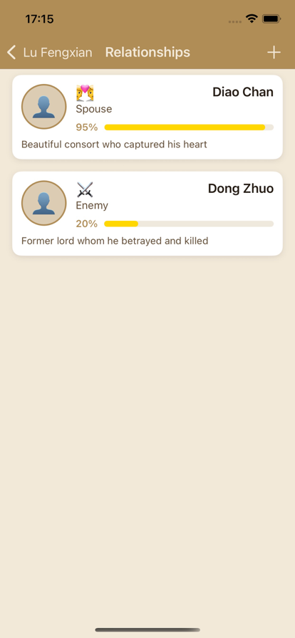 An application dedicated to cultivating generals and documenting role-playing, providing detailed records of generals' attributes, equipment, achievements, interpersonal relationships, and personal biographies. Whether it's a historical famous general or a self created character, you can record their legendary life here and experience the strategy and glory of the Three Kingdoms.