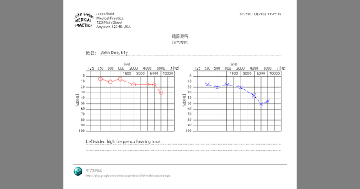 #WorldHearingDay即將發布《聽力測試》!現在進行新的語音清晰度測試「噪音中的數字」和新語言。<br>記住#HearingCare並立即進行聽力測試!檢查#Hearathon2021和全球聽力健康聯盟網頁#cghh上的事件。<br><br>該應用程序提供了兩個基本的聽力測試:純音測聽和語音清晰度測試「噪音中的數字」。<br><br>純音聽力測定法確定與聲音頻率有關的聽力損失程度。該測試包括確定您能夠聽到的最安靜的聲音,從而確定您的聽力閾值。「噪音中的數字」評估語音的清晰度,並包括識別噪音中的數字。<br><br>《聽力測試》應用程序的功能:<br>*純音測聽(使用捆綁的耳機和數據庫中的預定義校準係數),<br>*用於語音清晰度測量的「噪音中的數字」測試,<br>*噪音計可在測試過程中測量背景噪音,<br>*對設備進行校準(在缺少預定義校準的情況下或對於捆綁式耳機以外的耳機)。<br><br>附加的功能:<br>*高頻測聽,<br>*聽力損失的分類,<br>*與年齡標準的比較,<br>*打印測試結果,<br>*添加註釋,<br>*校準調整(校準係數可能會根據您使用臨床聽力計獲得的結果進行調整),<br>*驗證校準係數。<br><br>專業版功能:<br>*本地數據庫(無需連接服務器即可離線訪問測試結果),<br>*同步(您的測試結果可以存儲在雲中;數據易於恢復,可以在設備之間傳輸並可以在不同的設備上訪問)。