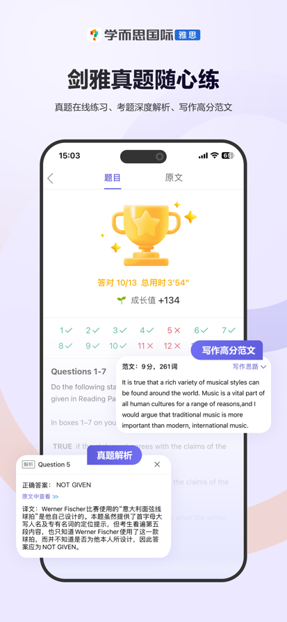 雅思考满分App,是学而思国际旗下的一站式雅思高效备考平台。 围绕雅思核心考点与真实考试节奏,整合剑雅真题练习、能力诊断、AI 口语陪练、独家核心词书、与知识点高分专项训练,帮助不同基础的考生高效定位短板,科学提分。 从入门到冲刺,从日常练习到考前强化,用更系统、更科学、更贴近考试的方式,陪你稳步考取理想雅思成绩。 主要功能介绍 【能力速测|快速定位真实水平】 -精选题目,快速生成个人能力评估,清晰呈现优势与短板; -为后续练习与训练提供明确方向,避免盲目刷题! 【剑雅真题随心练|贴近考试的实战训练】 -剑桥雅思真题在线练习,支持分题型、分模块练; -详细真题解析,帮助理解考点与出题逻辑! 【AI口语陪练|贴近真实考试的口语训练】 -当季最新口语机经,提供高分语料和回答提示,开口学习地道表达; -基于官方评分标准,提供多维度口语反馈,逐步提升口语稳定度! 【雅思核心词书速记|高频词汇系统掌握】 -官方自研多本雅思核心词书,覆盖不同阶段需求; -结合记忆曲线与发音测评,高效巩固词汇,提高长期记忆效果 ! 【高分训练营|专项突破短板】 -针对常见提分瓶颈设计专项训练; -聚焦高频考点,强化薄弱能力,补气短板! 无论你是刚开始准备雅思,还是处在考前冲刺阶段,雅思考满分App,用更专业、更高效的方式,陪你一步考取目标分数!!