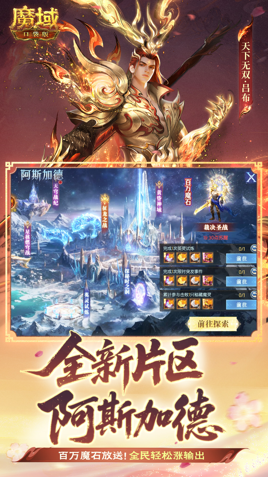 《魔域口袋版》是超人气MMORPG端游巨制《魔域》的官方正版手游。由天晴数码原班人马革新打造,复刻经典端游玩法:一人多宠,组建幻兽大军;九星副本,组队碾压BOSS;全服军团争霸,百人同屏攻城;精英家族抱团,争夺属于家族的领地!重燃《魔域》青春热血,重温《魔域》的无限感动,尽在《魔域口袋版》! 【游戏特色】 -百人同屏 红名大乱斗 真人实时同步对决,告别无脑单机对战。野外开红,再现端游级的红名挑战乐趣,军团决战,全服军团同台竞技,兄弟同心热血攻城战! -十一种职业 谱写IP史诗 雷神,星辰神子,御剑师,精灵游侠,狂战士,亡灵巫师,魔法师,异能者,暗夜君主,暗黑龙骑,战士;多类型职业各有千秋,还原经典技能打造手游特色打击感! -脱胎换骨 迈向神圣 神装橙武,任你打造;统驭神兽,制霸寰宇;御风飞行,纵横天地;众神之巅,等你来战!