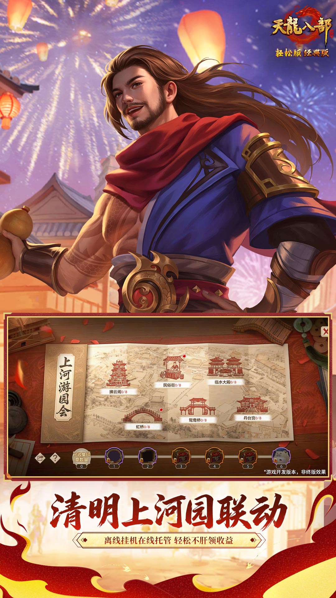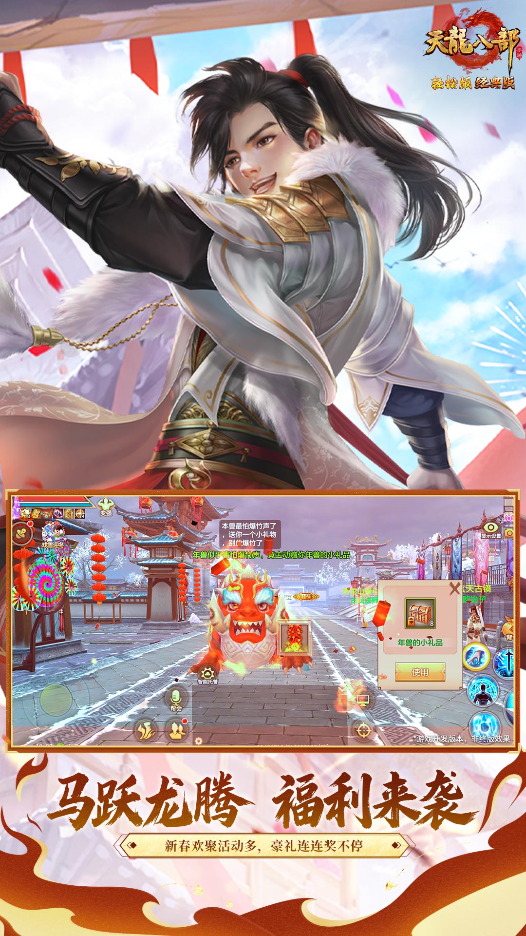 《天龙八部手游》轻松版与正式公测,九门派经典开启 重楼宝石登录领。 轻松版特色功能: 离线挂机更轻松,在线托管不用愁,轻松不肝领收益;高级佣兵秒进队,升级超快不用等;海量福利重磅放送,公测上线送重楼,活跃送珍贵宝石。 集师徒、结拜、家园、帮会,真实定位等社交玩法为一体,游戏内外亲密互动,《天龙八部手游》给你一个触手可及的有爱江湖!还有华美时装、酷炫坐骑、百变发色、海量幻化、百态武林等丰富玩法,待你开启属于自己的武侠冒险! 《天龙八部手游》由金庸正版授权,《天龙八部》端游原班人马倾心打造,完美传承端游核心特色与经典玩法。游戏以Unity引擎打造真实3D视觉盛宴,再现聚贤庄、珍珑棋局、琅嬛福地等知名场景,更有乔峰、段誉、虚竹、阿朱、王语嫣等英雄角色指点传世神功。经典门派,远攻近战、刺客治疗各具特色,珍兽神器、装备打造玩法丰富,还有行酒令、运镖、凤凰古城、帮会擂台等快意帮派玩法,营造出一个荡气回肠、快意恩仇的热血武侠世界,完美呈现金庸笔下宏大的天龙江湖!