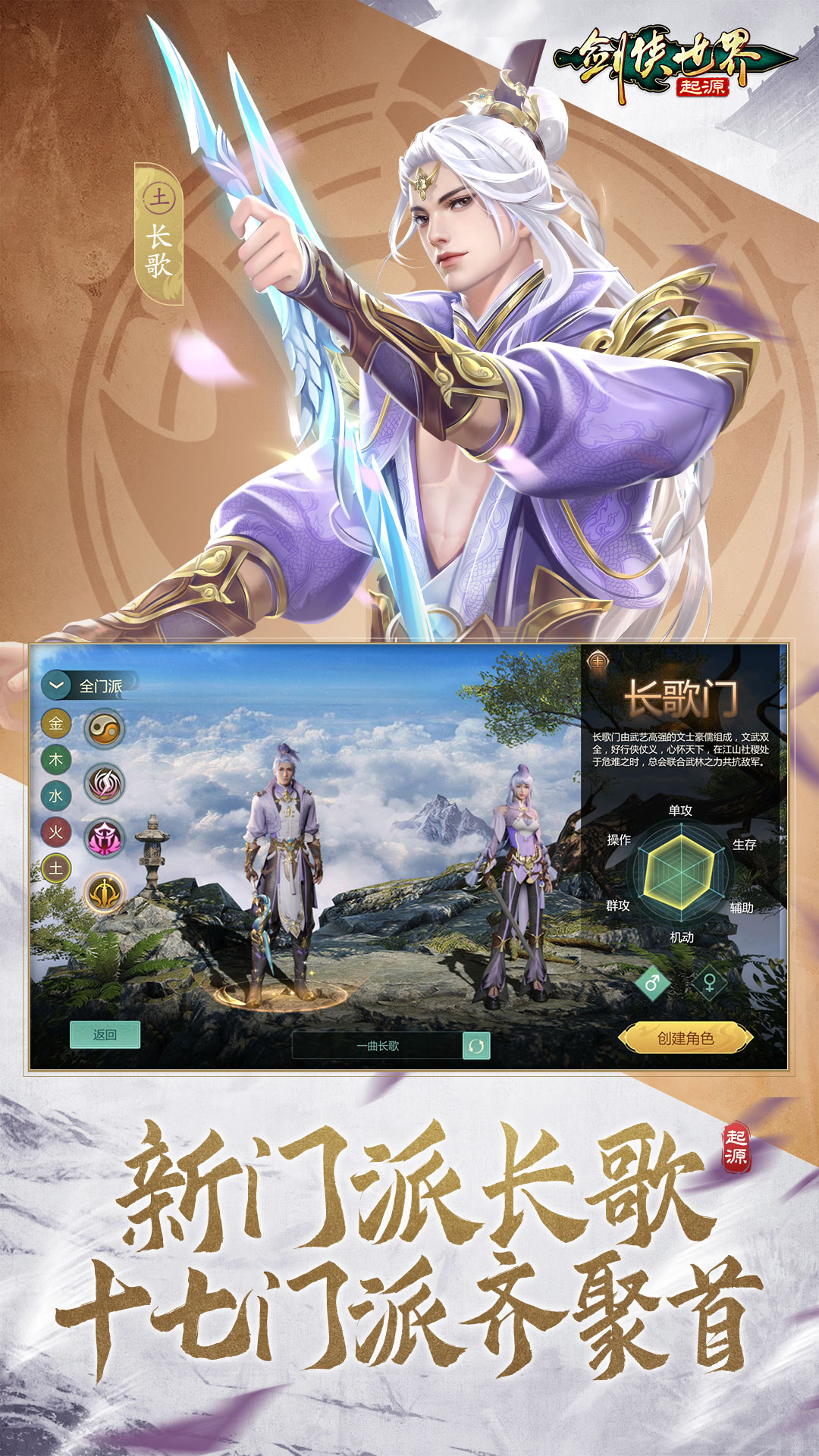 剑侠情缘26年传承之作《剑侠世界:起源》,复刻剑侠情缘系列玩法,还原“剑侠情缘”网游时代的特色设定,比如五行相克、宋金战场、秦始皇陵,自由交易让利玩家。长歌、逍遥、霸刀、古墓、天王、丐帮等16大门派,帮会兄弟集结,争夺野外首领和领土城战。忆当年武侠梦,剑侠世界就是我们的江湖起源! 新门派-长歌 全新门派「长歌」上线,17大门派齐聚江湖!作为武林中的新秀,「长歌」以其独特的风格横空出世,为江湖注入更多活力!清雅超然、飘逸潇洒,剑刃双修、五行属土的战斗方式让这个全新门派成为万众瞩目的焦点。 新玩法-守卫襄阳 全新PVE玩法「守卫襄阳」火热开启!各帮会大侠集结襄阳,激烈血战,刀光剑影纵横,襄阳保卫战,已打响,共同抵御金国的进攻,唯有运筹帷幄,果断出击,方能以智破敌,斩获敌军贼首与丰厚奖励! 新等级-宗师 江湖风云再起,全新等级「宗师」震撼来袭!突破自身极限,迈入更高境界,迎接前所未有的挑战与荣耀。新的等级,新的战斗,大侠准备好踏上成为宗师的巅峰之路了吗?一起征战沙场,书写你的传奇篇章吧! 新系统-同伴阵法 江湖再掀波澜,全新“同伴阵法”震撼开启!助力大侠战力飞升,驰骋武林无所匹敌。江湖风云再起,新的冒险等待大侠前来探索!为同伴激活阵法,踏上更精彩的武林之路吧!