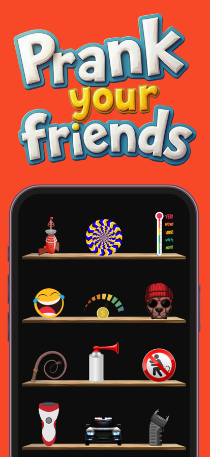 超过80种搞笑恶作剧工具,海量500种音效合集,还有众多搞笑小游戏。 恶作剧。 一个应用内涵盖多种恶作剧,轻松选择一个,然后将其施加在毫不知情的朋友身上。如果你不确定如何执行某项恶作剧,只需点击问号图标。它会为你提供如何使用恶作剧或者如何操作恶作剧结果的指导。此外,你还可以在恶作剧商店中解锁额外内容,以尽情开展更多恶作剧。 游戏。 当你想远离恶作剧或需要测试你的技能时,你可以尝试这12个有趣又具挑战性的游戏。 尽情享受! 请注意,此应用中的所有恶作剧仅供娱乐之用。另外,应用中还包含一些可怕的恶作剧。当打开其中一个可怕的恶作剧时,你将会收到通知。如果你容易受惊吓,最好不要使用它们。享受欢笑和刺激,但在使用这些恶作剧和游戏时,请始终牢记要尊重他人的感受。
