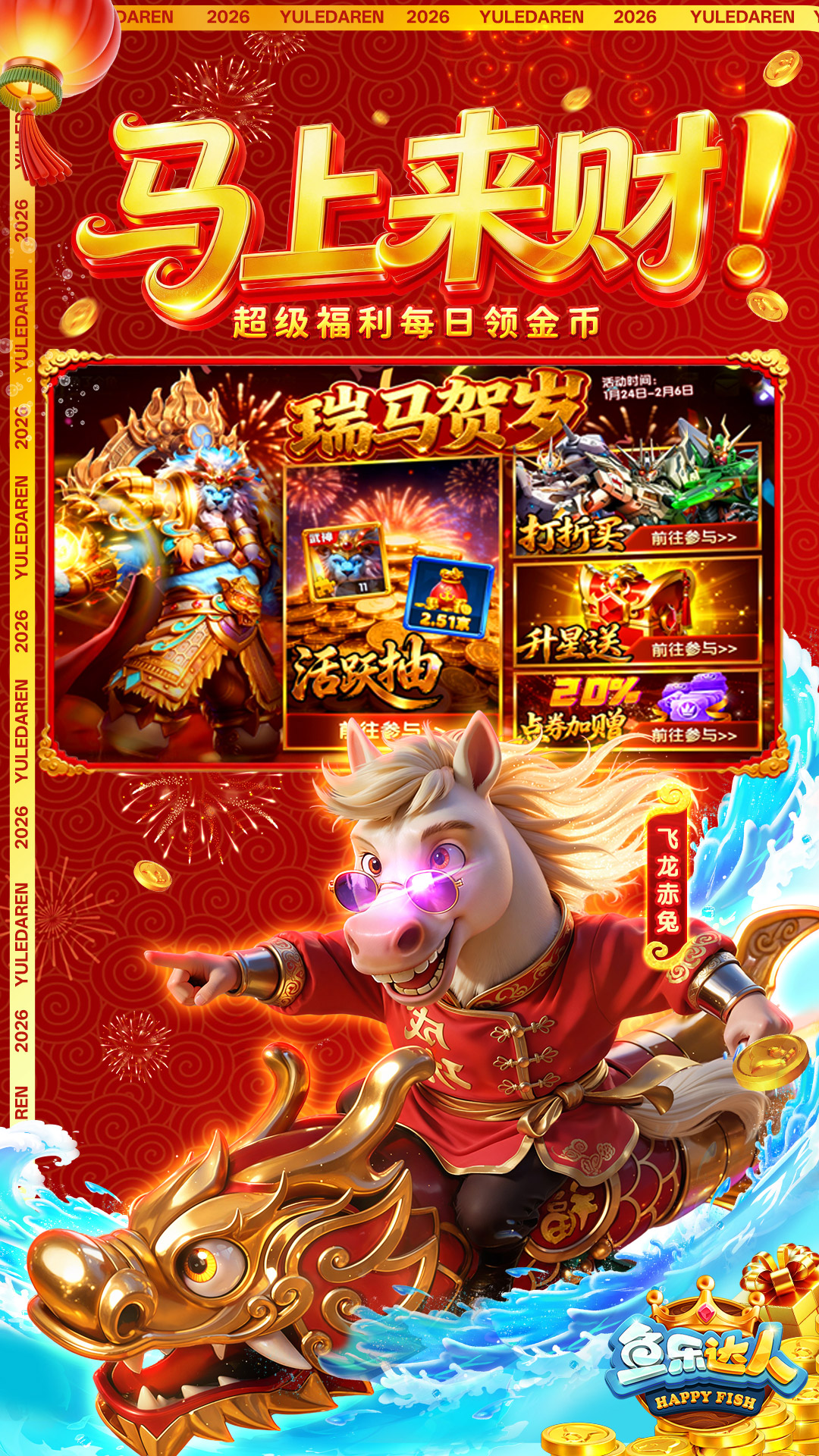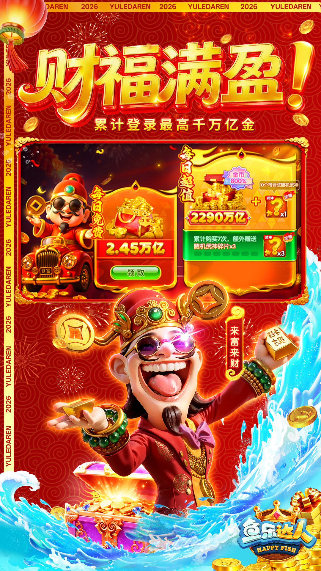 【免费礼包】兑换码:YL520、YL999,DR666,DR888<br>【兑换方式】进入游戏-右上角设置-点击钥匙-输入兑换码即可领取<br><br>《鱼乐达人》带着全新捕鱼体验震撼上线。<br>游戏拥有次世代美术表现力,更完美再现经典街机玩法,超高爆率轻松打鱼,超快节秦极速爆金,颠覆传统格局,开启全新时代。<br><br>【酷炫画面】<br>美术团队全力打造影视级震撼海底场景,使用全3D环绕式立体音效,为玩家献上灿新视听盛宴,让您身临其境遨游海底渔场。<br><br>【超爽体验】还原经典街机,千万级巨炮横扫渔场爆金不停,真实体验一炮过亿爽翻天。<br><br>【强力炮台】炫目耀眼的炮台和酷炫翅膀,让您一进房间就成为全场视线的焦点!<br><br>【奇珍异兽】热力四射的魅夜九尾狐,嚣张跋扈的猩猩老板,尽揽全场宝藏的紫金葫芦,蹦蹦跳跳玲珑可爱的祥瑞福狮,超多珍奇等您捕捉。<br><br>【福利满满】每日只要登录就能领取满满福利,恭迎礼、发财金,海量金币领到手软。<br><br>更多精彩,尽在鱼乐达人3D版!<br><br>【特别声明】<br>本游戏致力于为成年人(18+)提供卓越的游戏体验,游戏内不涉及任何赌博、现金交易和兑换实体奖品内容,在游戏内获得成功的体验,不代表现实生活中的成功。<br>本游戏不涉及赌博,故玩家无任何机会赢取现金或实体奖品。